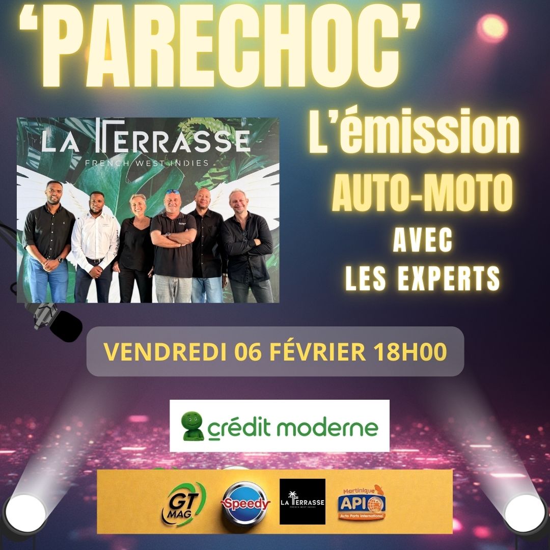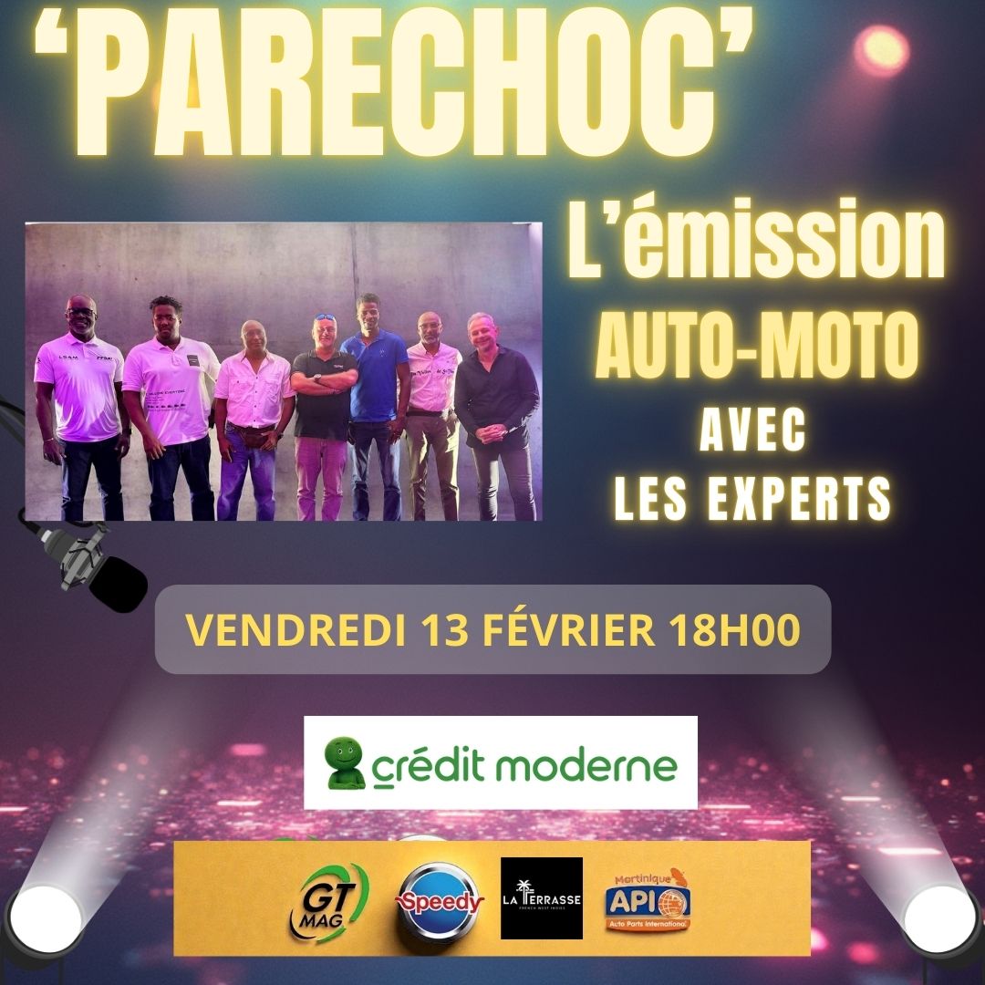 Vendredi 23 janvier retrouver le numéro 0 de notre nouvelle émission #parechoc AVEC JM de la bande à JM, www.gtmag.fr et tous ses invités du secteur #automoto en #martinique et aux #antillesfrancaises ! Vendredi depuis l'#Arobase du CASINO BATELIERE PLAZZA je recevrai avec Éric Rouget #lucanieddu de l'#avere Martinique nous aborderons avec lui les nouvelles fiscalités en 2026 pour les automobilistes... Nous retrouvons #willemessart de l'association #bwadjackaddict nous parlerons du carnaval bien...
