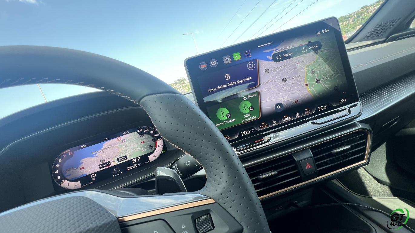 Sa boîte double embrayage de série qui ne nuit aucunement à une consommation moyenne de 6,4 l/100 km, avec un conduite sereine sur notre rocade et notre autoroute. On descendre la consommation à 5,5 l entre nos bourgs sur route secondaires où le fonctionnement sollicite moins le moteur qui désactive alors deux cylindres et fait jouer l’alterno-démarreur 48 V avec sa petite batterie lithium-ion. Ce Formentor est homologué à 130-139 g avec un malus de 310 euros en 2024, c’est acceptable. Et on retrouvera toutes les qualités de fabrication et de finition premium du Formentor PHEV.