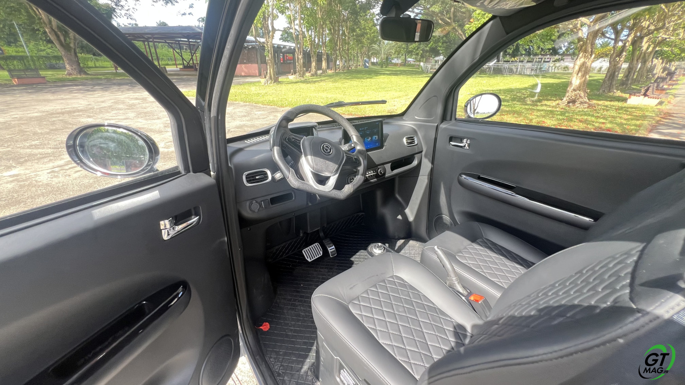Pour info le conducteur doit être âgé de 14 ans minimum et être titulaire a minima du permis AM. Le permis B n’est pas nécessaire. Mais ceux qui sont nés après le 1er janvier 1988 doivent passer le permis AM (l’ancien BSR) et être détenteur de l'ASSR (1 ou 2) ou l'ASR, comme pour les deux-roues de 50 cm3 (scooters). Il s’obtient dans une auto-école. La formation pratique comprend cinq séquences dispensées sur un volume horaire total de huit heures, au minimum sur deux jours. Depuis le 1er mars 2024, les élèves en apprentissage anticipé de la conduite sont dispensés de la formation pratique… Enfin seules deux personnes peuvent monter à bord, soit un conducteur et un passager sachez qu’un enfant de moins 10 ans doit être installé sur un siège auto homologué. Comptez en Martinique un tarif de 12990 euros TTC…