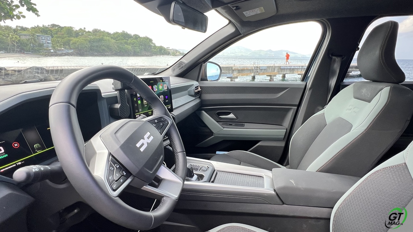 En termes de tenue de route, le DACIA Bigster est dans la bonne moyenne du segment C. Il se montre efficace ses 4 pattes sur notre autoroute et suffisamment maniable pour des sorties en ville. Sur nos routes sinueuses il est un peu plus à la peine compte-tenu de son gabarit, mais ses suspensions et son châssis équilibré offrent une conduite plutôt confortable. Mention très bien pour la direction assistée, plutôt bien calibrée pour un SUV de ce gabarit, ce qui permet de manier avec vraie aisance, même en milieu urbain. Le grand atout de ce véhicule c’est l’espace réservé aux passagers et à sa polyvalence… Côté volume le coffre est un vrai plus pour nos îles si vous êtes sportifs avec planche de surf ou cycliste ou tout simplement plagistes avec un belle et grande famille elle peut assurément vous séduire… A vous de voir et de l’essayer maintenant…