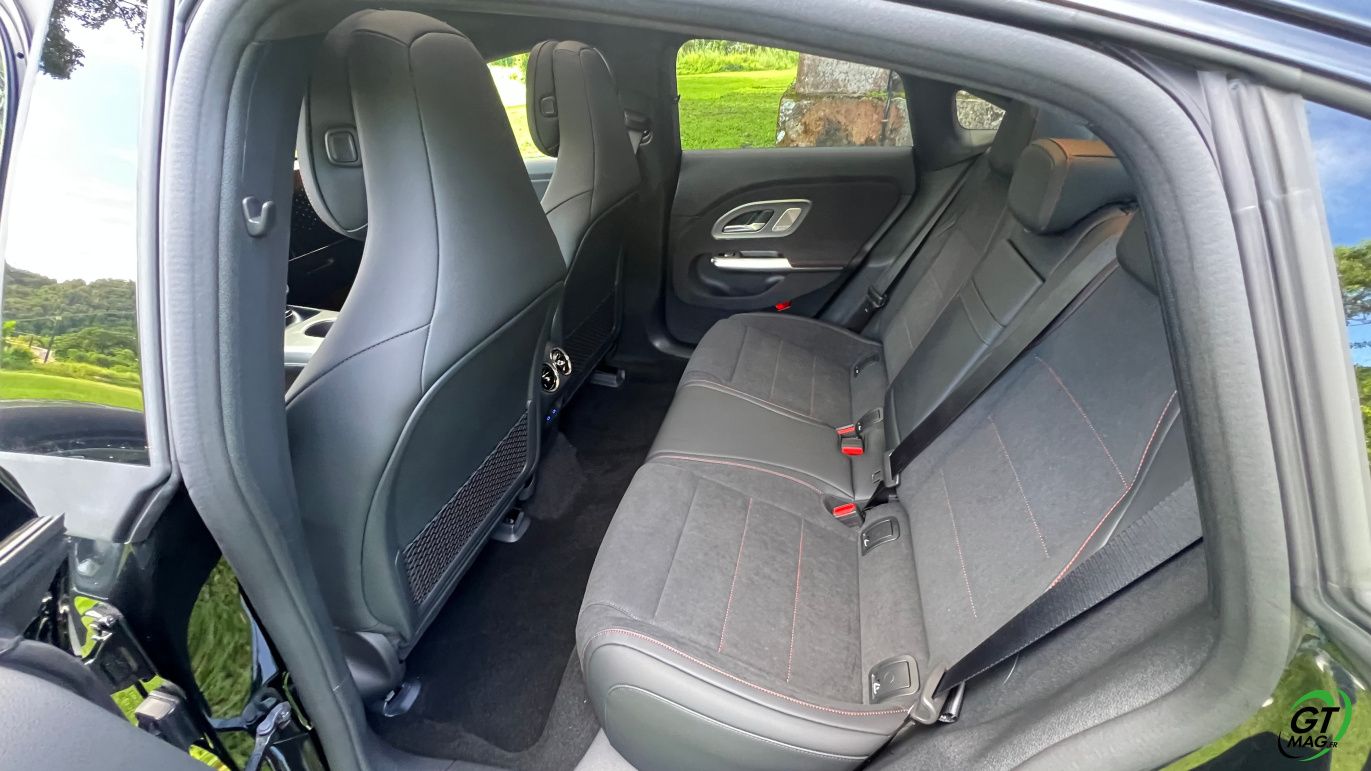 L’écran en lui-même est plutôt bien structuré, mais son fonctionnement diffère des systèmes Mercedes actuels. En effet, plutôt qu’un menu principal divisé en catégories, toutes les applications et menus sont regroupés dans un grand tiroir, à la manière d’un smartphone. La commande de la climatisation se fait également via l’écran, mais reste constamment visible. Sur la console centrale, seuls quelques boutons restent présents : ce sont ceux destinés aux modes de conduite, aux caméras de stationnement, à la désactivation de l’écran, aux feux de détresse, à l’assistant vocal et au volume. Les deux pavés tactiles sur le volant, qui permettaient auparavant de contrôler l’écran conducteur à gauche et l’infodivertissement à droite, ont disparu. Le volant, lui, sera prochainement mis à jour, puisqu’un tout nouveau modèle a fait ses débuts sur la Mercedes CLA avec… de vraies molettes physiques pour le volume et le régulateur de vitesse !