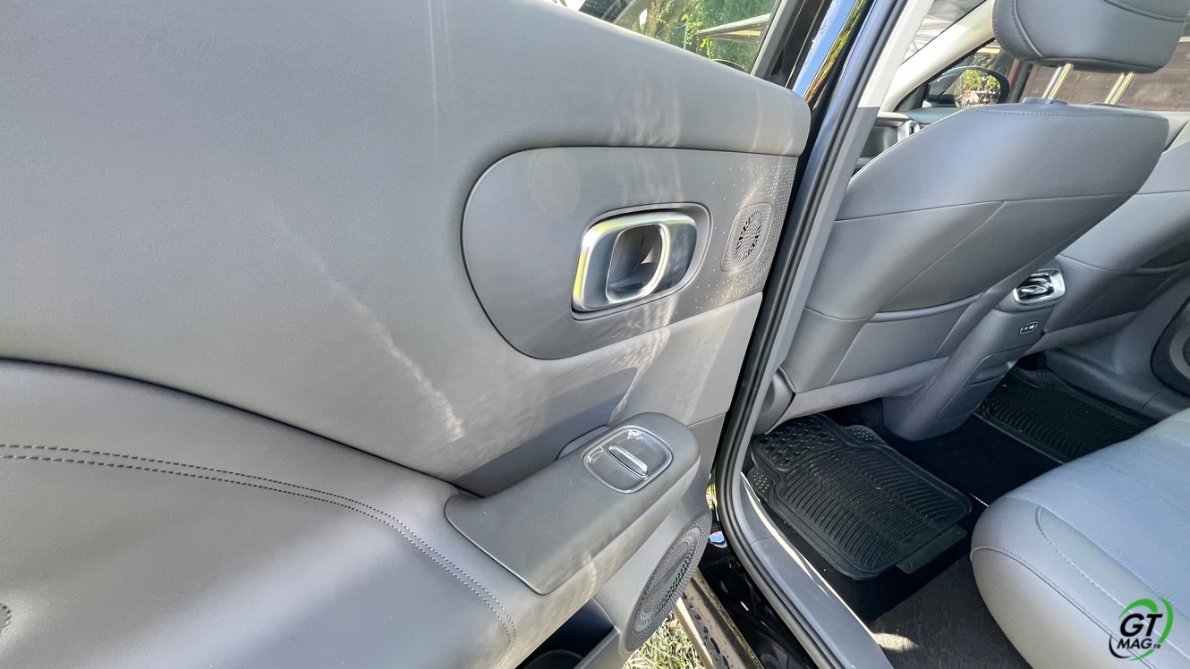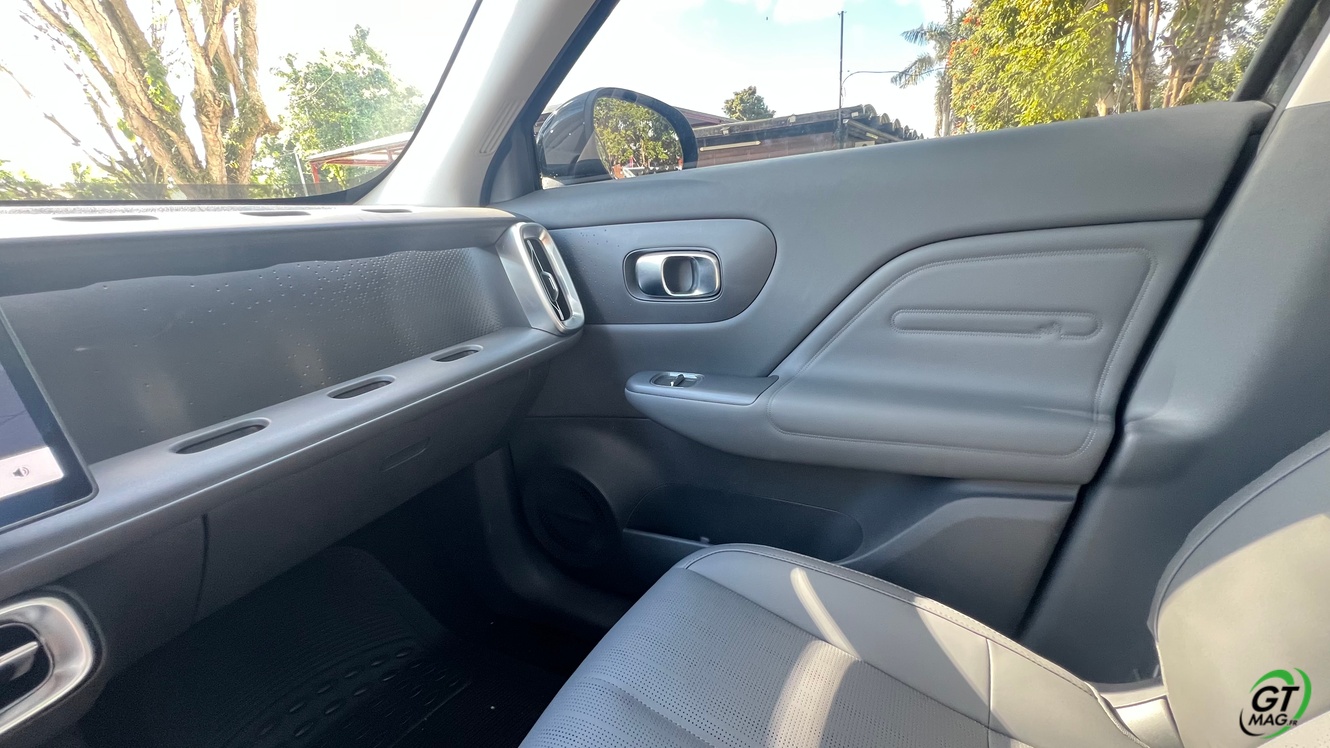 Côté design on peut le trouver surement discret, tout en fluidité, et dont l’un des mérites est de ne pas être générique de ne pas donner l’impression qu’on l’a déjà vu cent fois… Son look dynamique et ses lignes fluides reflètent une nouvelle génération de SUV électriques pensés pour la ville comme pour les longs trajets. La calandre fermée, typique des véhicules zéro émission rappelle qu’il est 100% électrique. La face avant du B10 au style « Gravity Field » déploie ses phares LED divisés avec bandes DRL, des poignées escamotables, des jantes 18 pouces, et une vraie bande lumineuse arrière. le B10 présente une signature visuelle haute et linéaire, tandis que ces « réelles » optiques sont logées plus bas dans le bouclier. A l’arrière justement pas de doute, on s’approche des formes du Porsche Macan, volontaire ou pas on peut s’y méprendre dans un rétroviseur par exemple… Le tout est plutôt bien dessiné, sans fioritures, un style sobre et efficace, discret comme je le précisais…