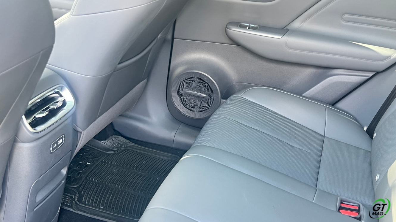 Dans l’habitacle, le Leapmotor B10 suit son propre chemin avec une planche de bord à deux étages. À notre grand étonnement et plaisir, on trouve des buses de ventilation, ainsi qu’un espace de rangement bien pratique devant le passager. En sus, il y a un grand bac dans la console centrale et deux porte-gobelets escamotables. Une chose est sûre : ce ne sont pas les rangements qui manquent ! D’ailleurs, toujours sur le point du rangement et de l’habitabilité : le Leapmotor B10 joue bien de sa taille pour offrir un habitacle généreux. Devant comme derrière, tous les passagers seront bien assis, tandis que le coffre taille à 430 litres. Mieux encore, il y a 25 litres d’espace sous le capot. Pratique pour les câbles ! Côté infodivertissement, tout passe va une grande dalle tactile de 14,6 pouces – en plus d’une instrumentale digitale de 8,8 pouces. Quand on dit « tout », c’est vraiment « tout », puisque le B10 ne présente aucun bouton. Pas même pour régler les rétroviseurs…