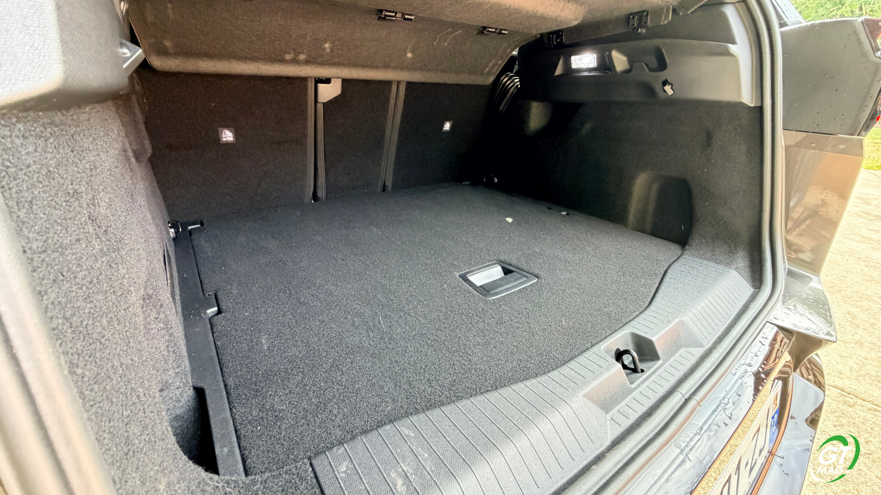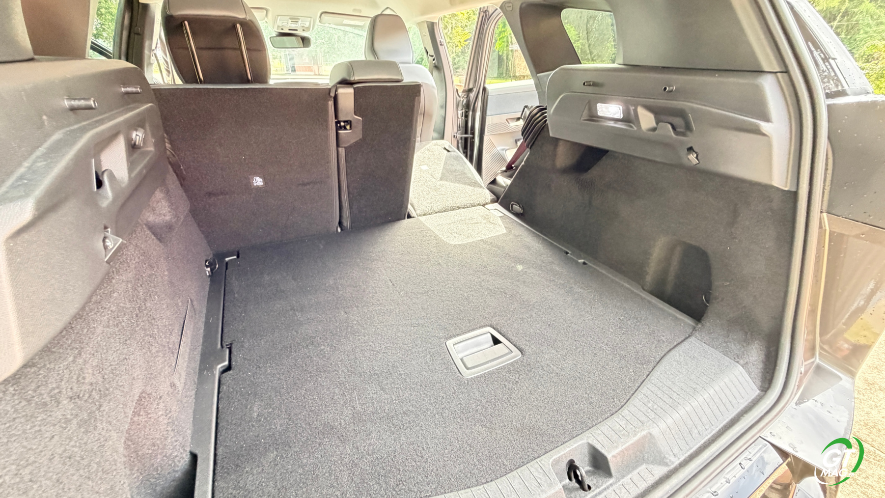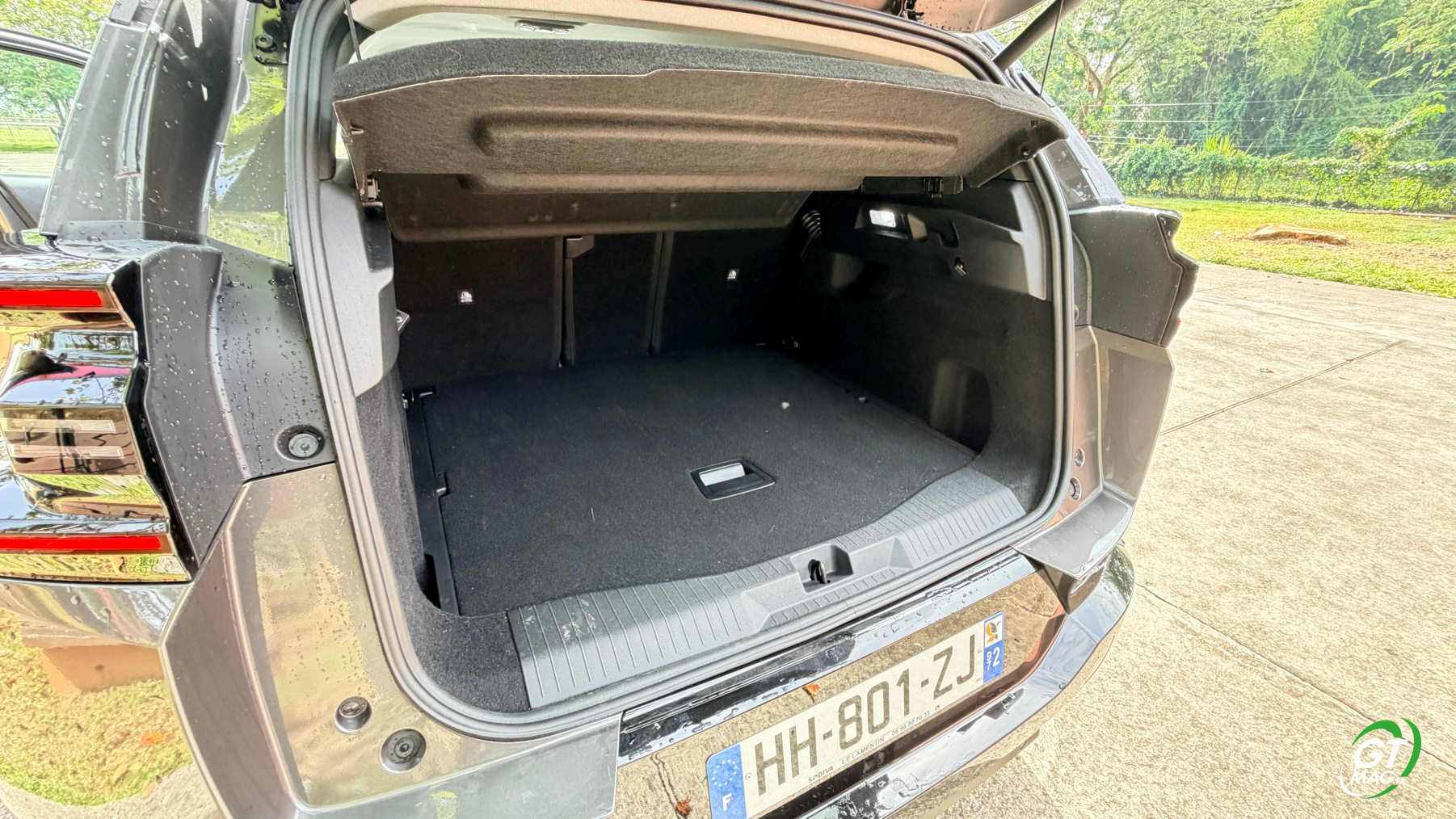 À l’arrière, le nouveau grand SUV de la marque abandonne ses trois sièges individuels, qui faisaient le charme de l’ancienne génération, pour préférer une banquette fractionnable 40-20-40 possédant quand même des dossiers inclinables, afin de maximiser le confort des passagers arrière qui, à tout le moins, sont choyés. Ainsi, grâce à son empattement de 2,784 m, en hausse de 6 cm par rapport à la première génération, le C5 Aircross propose un espace aux genoux arrière en hausse de 51 mm, pour devenir le meilleur de sa catégorie. Enfin, le coffre de 651 litres, disponible quelle que soit la motorisation choisie, offre une contenance comprise entre les 580 et 720 litres proposés sur l’ancienne génération. Toutefois, le compartiment est très bien conçu, avec des côtes bien droites et un volume exploitable totalement. Un plancher de coffre vient offrir un seuil de chargement plat, plancher qui peut être abaissé pour maximiser le volume de chargement. Comme toujours chez Citroën l’esprit pratique est renforcé par de nombreux rangements à bord, à l’image des aumônières supplémentaires à l’arrière pour ranger son smartphone, des bacs de portes dimensionnés pour des bouteilles d’eau et, à l’avant, par deux généreux vide-poches. Un est caché sous l’accoudoir central, l’autre sous l’écran central à l’avant.