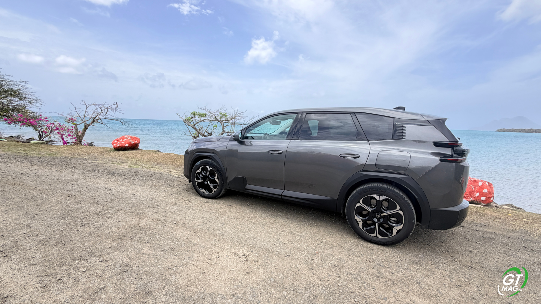 Le Citroën C5 Aircross a été présenté pour la première fois au Salon de l'Automobile de Shanghai en 2017. Il se positionne dans le segment des SUV compacts, visant à allier confort et praticité. Le C5 Aircross se distingue par son apparence robuste et moderne, avec des lignes fluides et une calandre distinctive.  Il intègre la technologie "Advanced Comfort" de Citroën, offrant un excellent confort de conduite grâce à une suspension améliorée et des sièges ergonomiques. Doté d’un intérieur spacieux, il propose une modularité avec des sièges arrière coulissants et rabattables. Rappelez-vous le C5 Aircross est commercialisé à partir de 2018, avec une forte demande sur les marchés européen et chinois. Il intègre rapidement de systèmes d'infodivertissement modernes, une très bonne connectivité et des aides à la conduite avancées. Départ de chez Citroën Martinique pour tenter dans savoir plus sur la version 100% électrique essayée ce matin par GTMAG.fr !