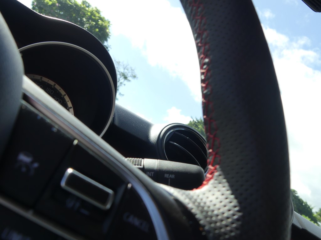 L’intérieur se présente de belles touches sportives avec des rappels rouges vifs, les sièges semi-baquets à l’avant offrent un bon maintien et les instruments sont très bien placés. Au centre de la planche de bord, l’écran 7 pouces affiche au choix la navigation 3D, la caméra de recul, la téléphonie avec Apple CarPlay, Android Auto et Mirror Link, la musique en streaming…L’effet n’est pas trop visible mais la console centrale est orientée de 5° en direction du conducteur. L’écran tactile est très grand et ses menus sont clairs et faciles à utiliser.
