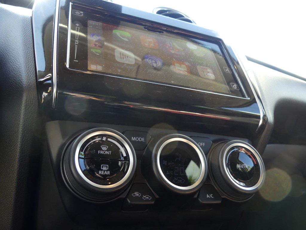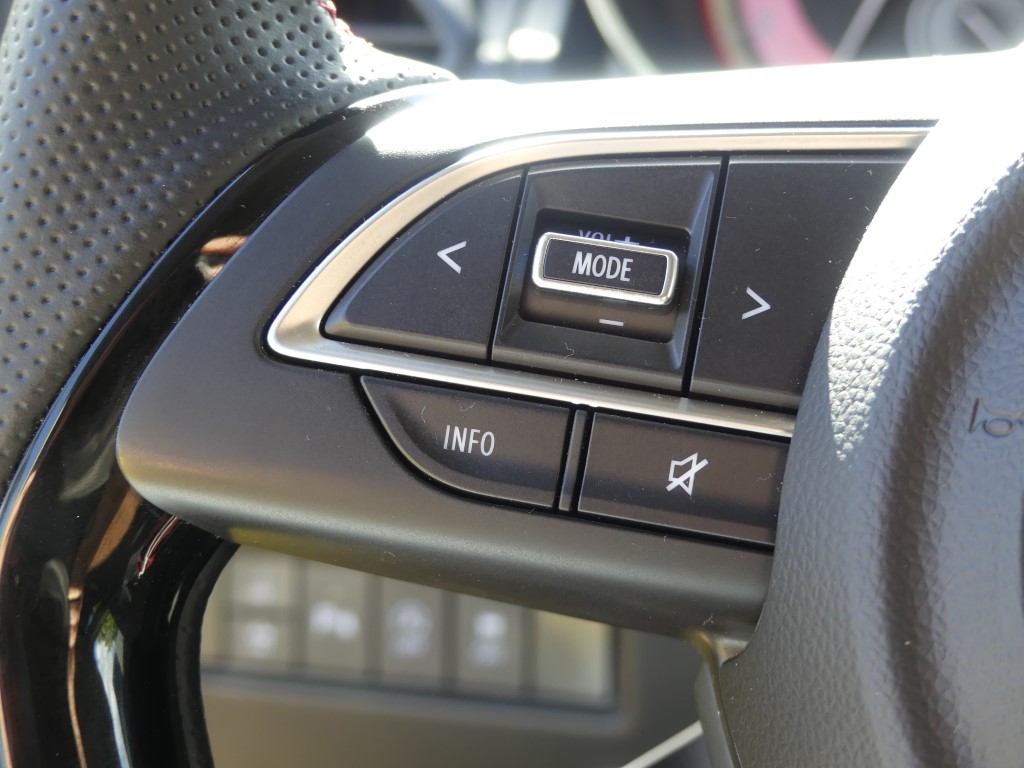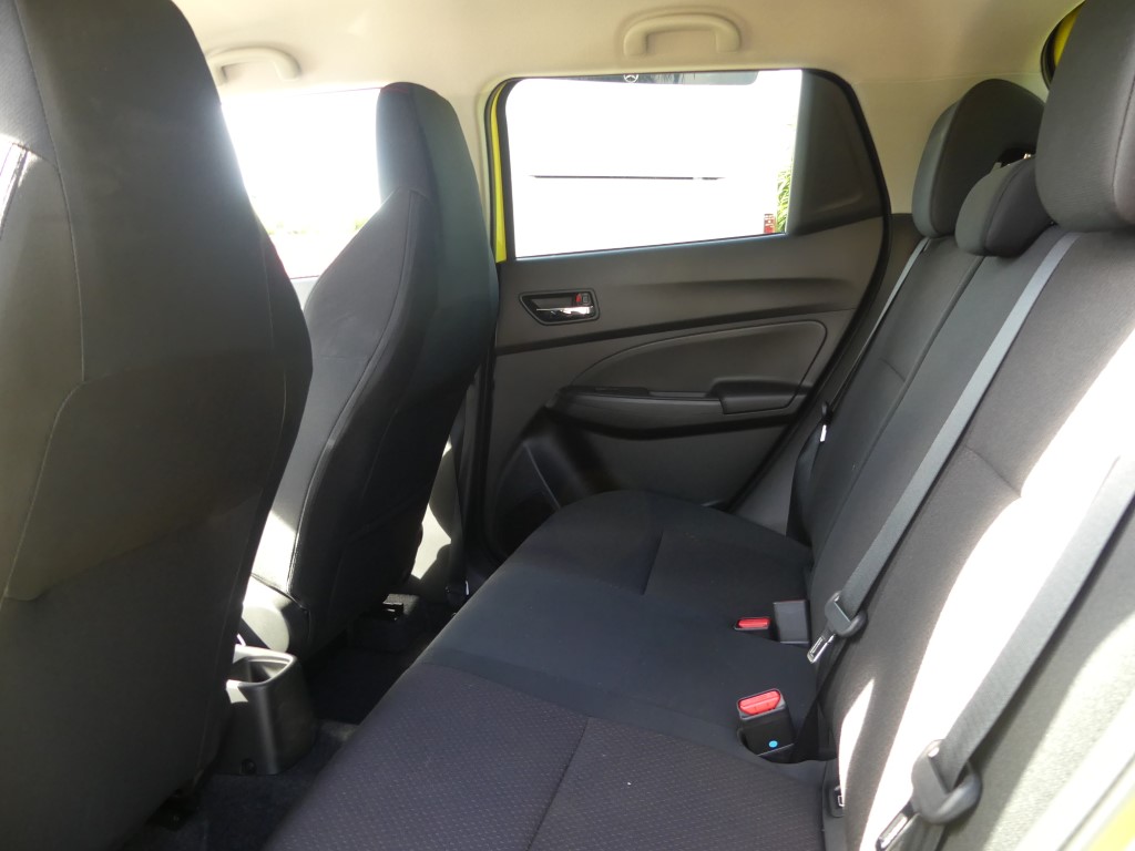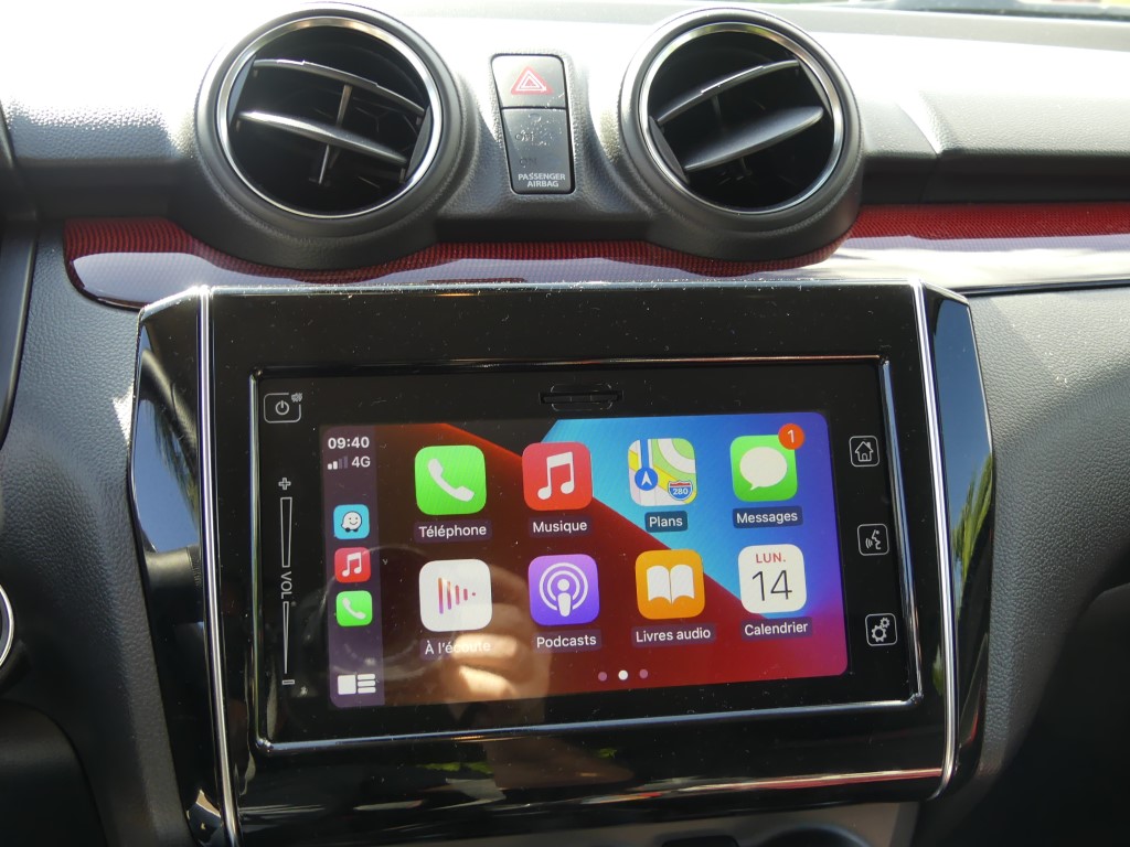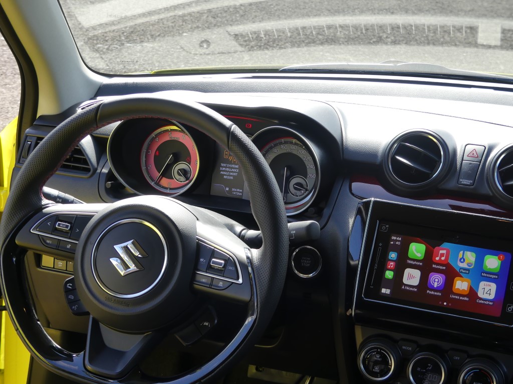 Suzuki n’a pas opté sur les plastiques souples, mais l’ensemble reste de très bonne tenue et affiche une qualité sincère ? Le design est porté sur l’ergonomie, avec un volant multifonctions bien dessiné et agréable à prendre en main. Sous le regard du conducteur, un écran de 4,2″ affiche entre les compteurs les informations relatives à la consommation, mais aussi des animations sur l’hybridation et le couple délivré en direct. Assez classique dans son dessin, la planche de bord se démarque par son bandeau proposé en quatre coloris différents. La teinte en question est reprise également sur les contre-portes.On termine avec le coffre, d’une contenance de 265 litres et qui progresse de 54 litres par rapport au modèle sortant.