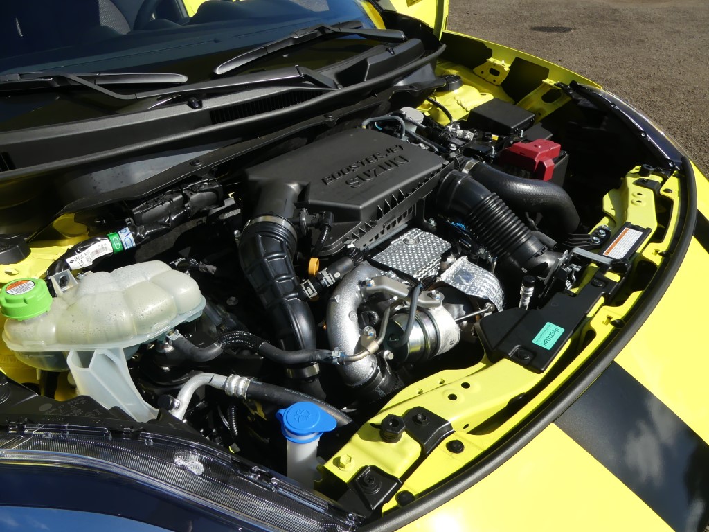 Le moteur 1.4 Turbo à injection directe change de nom pour l’occasion et se nomme désormais BOOSTERJET HYBRID. La cylindrée ne change pas 1373 cm3, le couple grimpe légèrement (235 Nm), mais la puissance baisse : elle passe de 140 à 129 ch. Cette nouvelle version du moteur est associé à une batterie de 8Ah, et surtout un moteur électrique de 10 kW et 53 Nm, fonctionnant de pair avec un convertisseur 12/48V. En effet, l’ensemble marche en 48V, notamment pour la récupération d’énergie au freinage et pour le boost à l’accélération. Mais ce n’est pas tout : Suzuki a développé un système de roue libre qui permet de couper totalement l’injection de carburant lors des débrayages. Le moteur électrique prend alors le relai sur ces courtes périodes pour maintenir un ralenti à 1000 tr/mn.