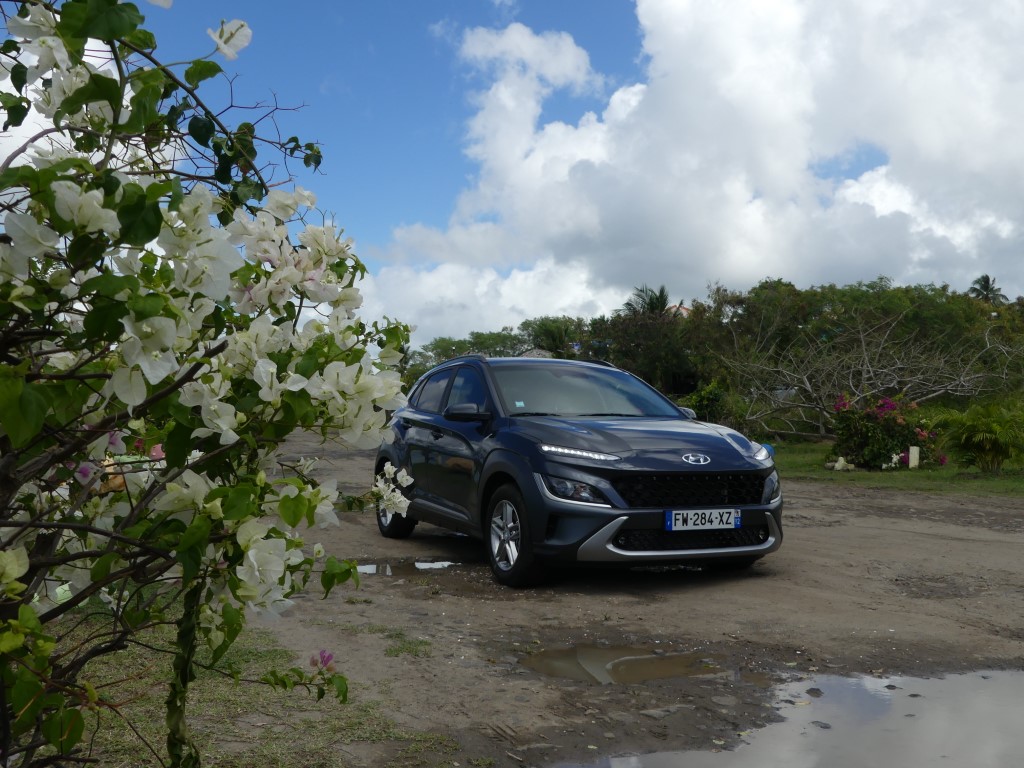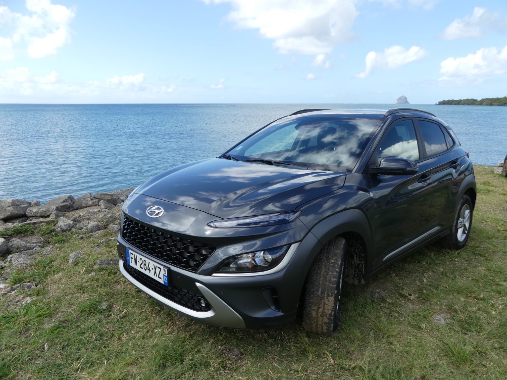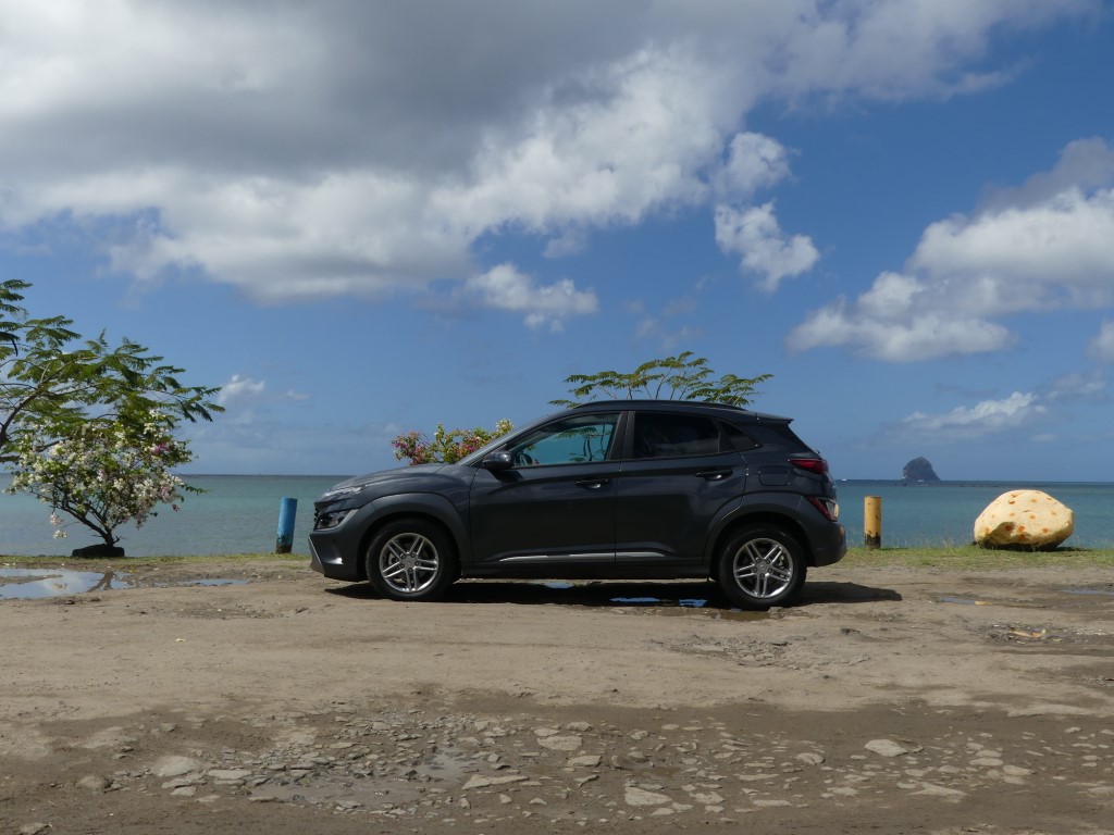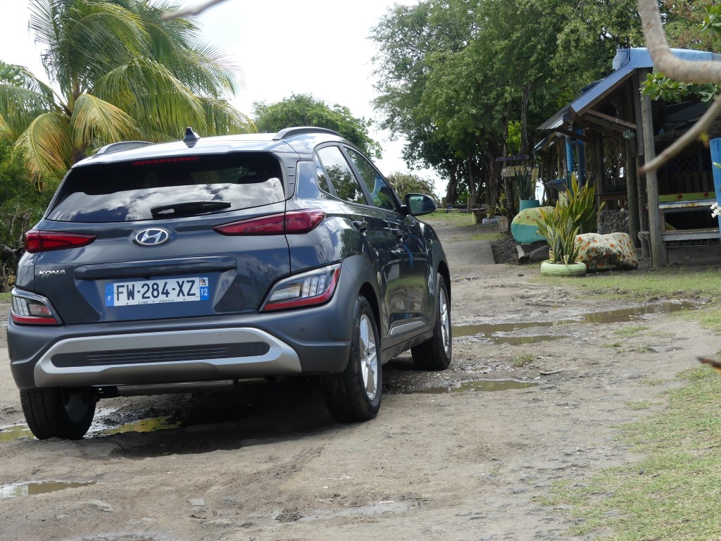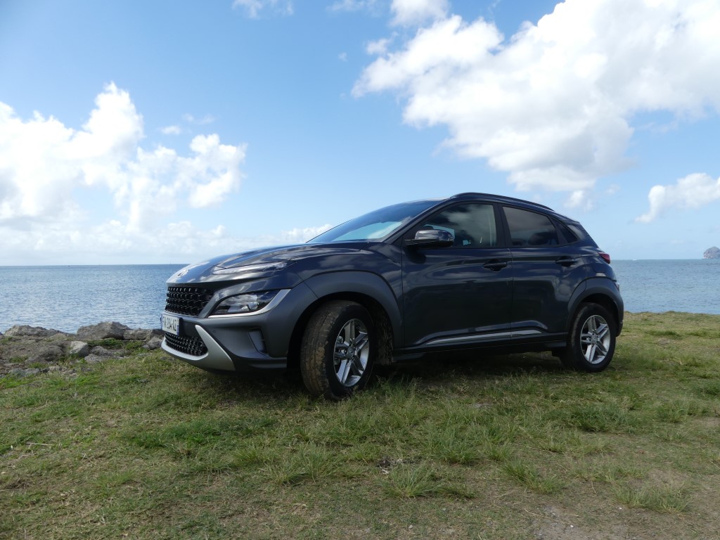 Sur les routes de Martinique le Nouveau Kona agit comme un vrai Crossover, ses dimensions lui autorisent des virées journalières au centre ville de Fort de France sans se soucier dans minis places disponibles ou de bien se faufiler entre les rues étroites en allant sur la Savane… Avec 172 Nm à 1 500 trs/min le moteur agit avec souplesse et nervosité au besoin… Suspension et direction agissent avec cohésion le tout rehaussé un peu plus encore par la boîte automatique DCT à 7 rapports plutôt bien étagé… Le Kona est un vrai petit SUV Urbain coupé ce qui lui permet de sortir des bourgs pour aller s’essayer sur les chemins caillouteux des bords de plages ou sur les hauts Mornes sans sourciller pour autant… Avec 145gr de CO2 au km le malus reste abordable soit 310 €… Notre note est positive particulièrement sur son habitacle et son confort de conduite…