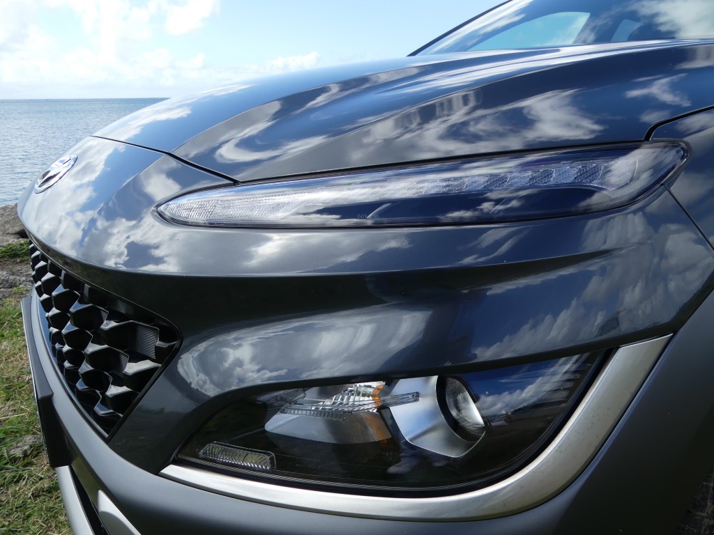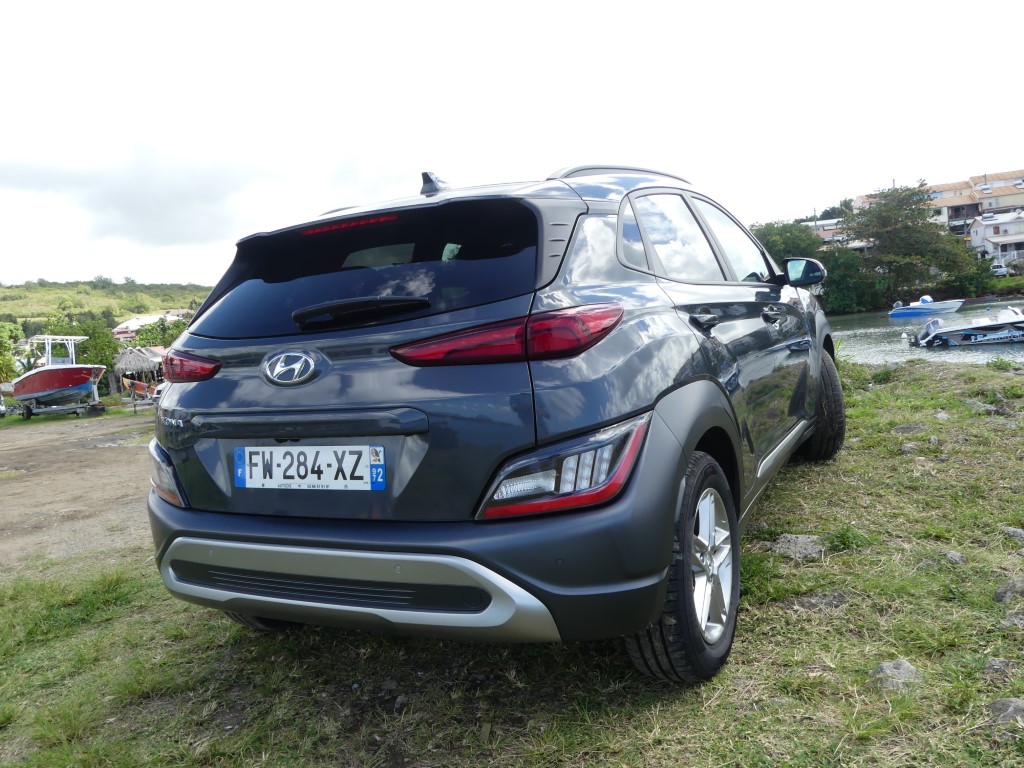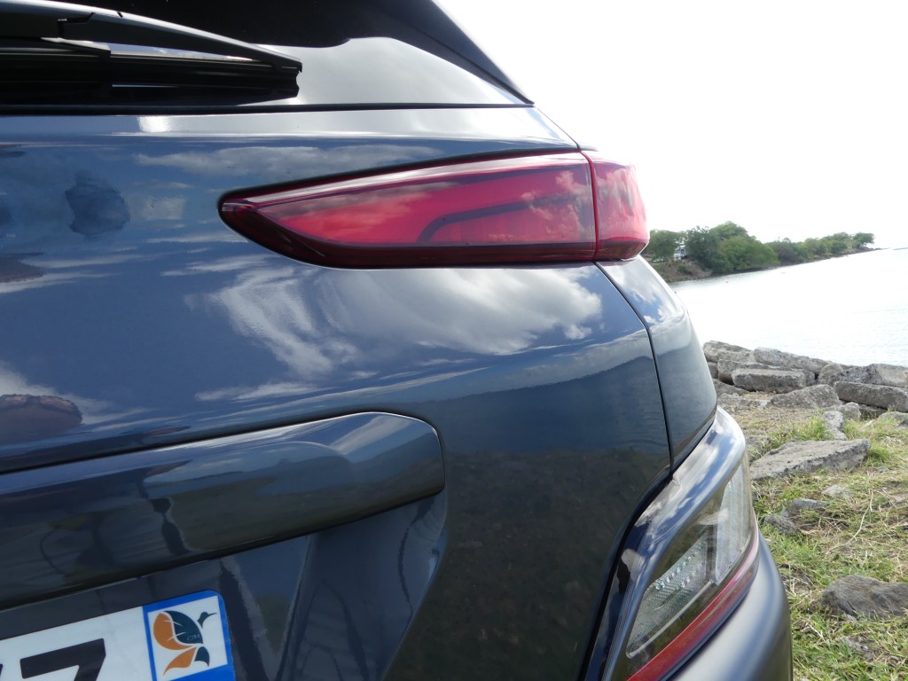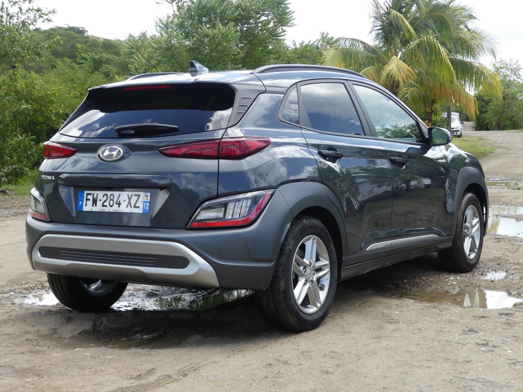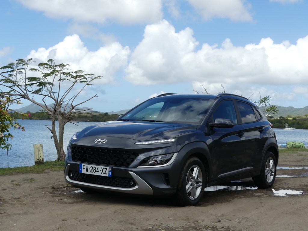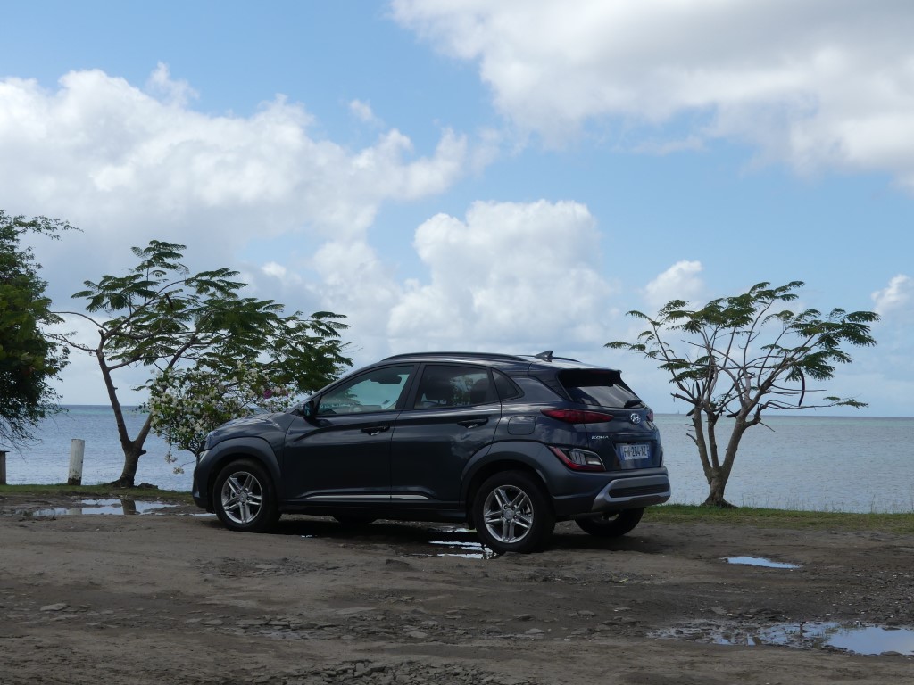 Sur les routes de Martinique le Nouveau Kona agit comme un vrai Crossover, ses dimensions lui autorisent des virées journalières au centre ville de Fort de France sans se soucier dans minis places disponibles ou de bien se faufiler entre les rues étroites en allant sur la Savane… Avec 172 Nm à 1 500 trs/min le moteur agit avec souplesse et nervosité au besoin… Suspension et direction agissent avec cohésion le tout rehaussé un peu plus encore par la boîte automatique DCT à 7 rapports plutôt bien étagé… Le Kona est un vrai petit SUV Urbain coupé ce qui lui permet de sortir des bourgs pour aller s’essayer sur les chemins caillouteux des bords de plages ou sur les hauts Mornes sans sourciller pour autant… Avec 145gr de CO2 au km le malus reste abordable soit 310 €… Notre note est positive particulièrement sur son habitacle et son confort de conduite…