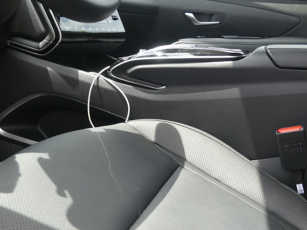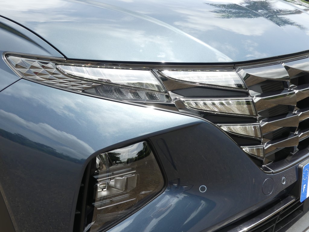 Tout en conservant des dimensions plus raisonnables que son grand frère le Santa Fé, le design s’en inspire, avec une énorme face avant et des lignes coupées au sabre pour renforcer son caractère dynamique. Hyundai lui offre toutefois quelques exclusivités stylistiques, telles que les optiques directement intégrées dans la calandre, ou encore une bande LED à l’arrière, faisant la jonction avec les deux feux. C’est évident : ce nouveau Tucson est bien plus “Agressif” que son prédécesseur. En marge de ces évolutions conséquentes, Hyundai s’est affairé à proposer un intérieur plus habitable. Avec une longueur augmentée de 20 mm, une largeur supérieure de 15 mm et un empattement allongé de 10 mm par rapport à la génération précédente, les passagers arrière profitent d’un gain d’espace aux jambes de 26mm. Ce dernier concerne aussi bien les versions 100% thermiques qu’électrifiées; les batteries étant placées sous les sièges arrière. Du côté du coffre, il offre jusqu’à 620 litres de stockage. Dans les faits, le nouveau Tucson surprend avec une habitabilité de haut niveau. On s’y sent aussi bien à l’avant qu’à l’arrière, même pour les grands gabarits.