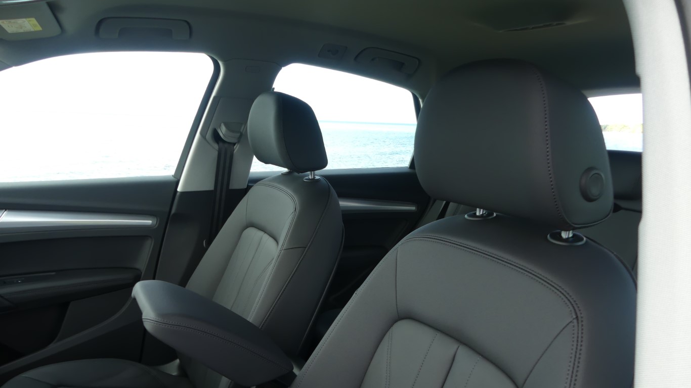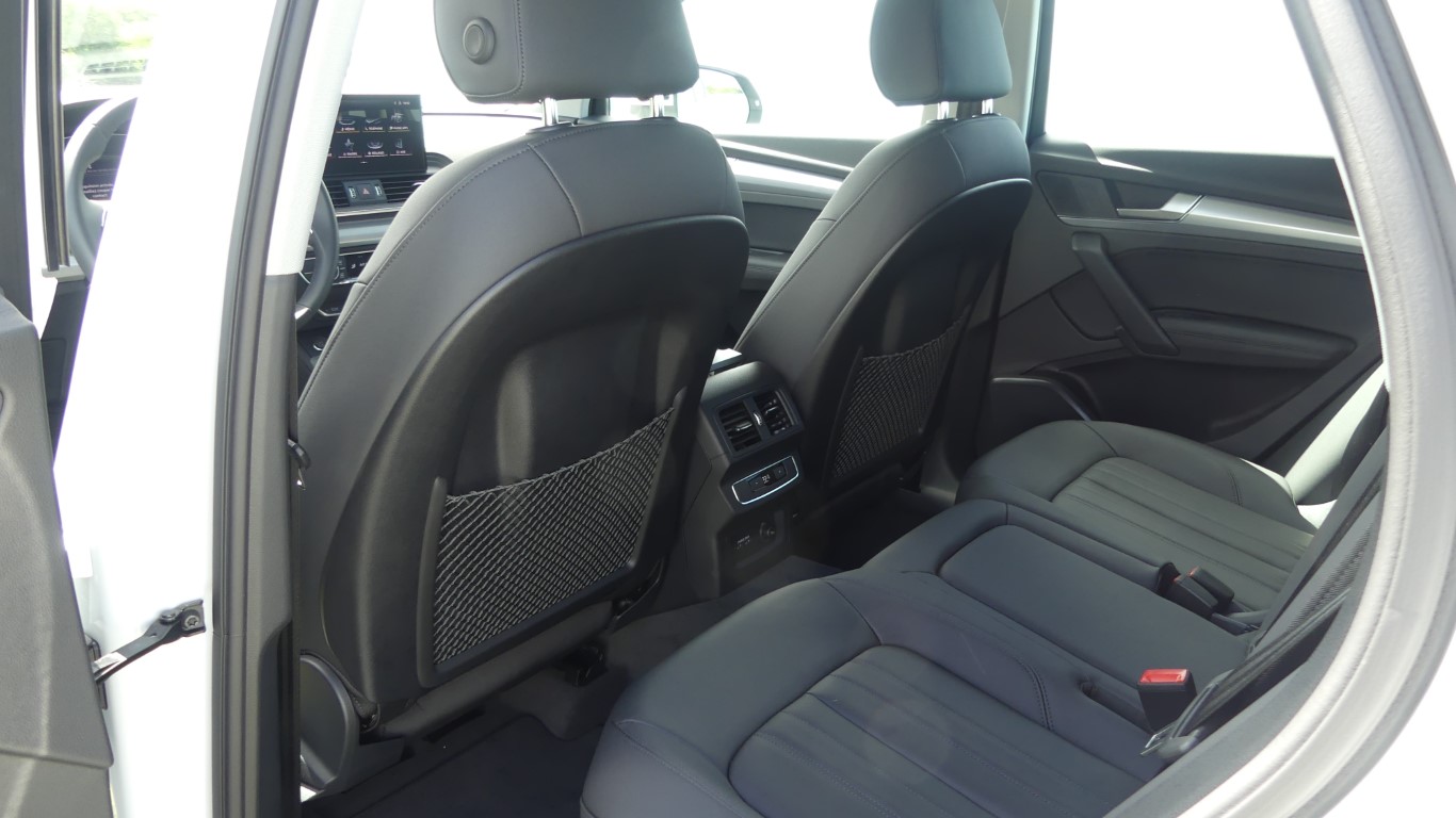 Les Q5 Sportback sont livrés de série avec une suspension sport plus tendue, ce qui devrait les rendre plus nets et plus attrayants à conduire que le Q5 régulier. Des amortisseurs réglables sont également disponibles, tout comme un système de suspension pneumatique, qui offre une plage de réglage totale de 2,4 pouces. Cela permet au Sportback pour augmenter sa garde au sol jusqu’à 1,8 pouces pour une meilleure capacité hors route, bien qu’il soit probablement déconseillé d’essayer le Rubicon Trail dans l’un de ceux-ci. Comme les autres multisegments équipés d’une suspension pneumatique, cette Audi peut abaisser sa carrosserie à grande vitesse pour une aérodynamique améliorée et vous pouvez laisser tomber l’arrière du véhicule en appuyant sur un bouton dans la soute afin de faciliter le chargement ou le déchargement de marchandises encombrantes.