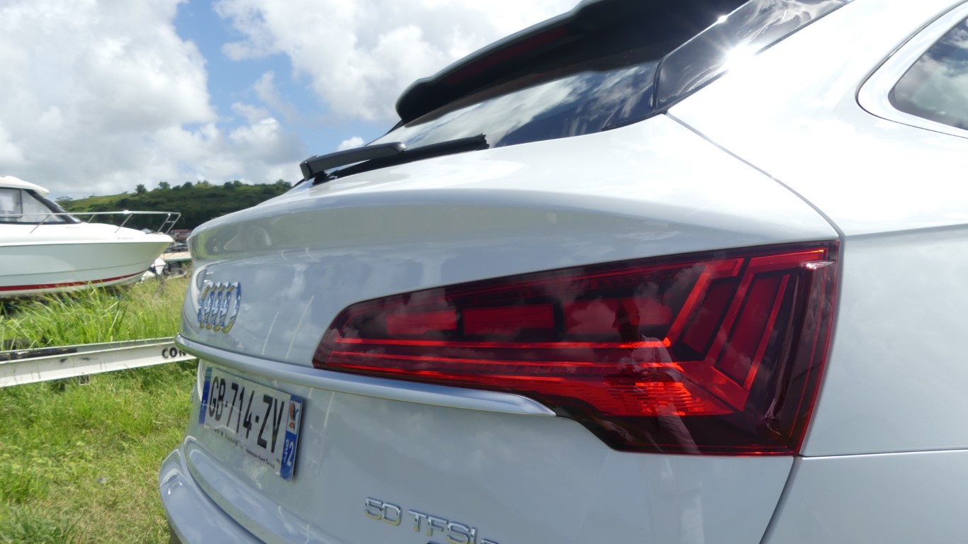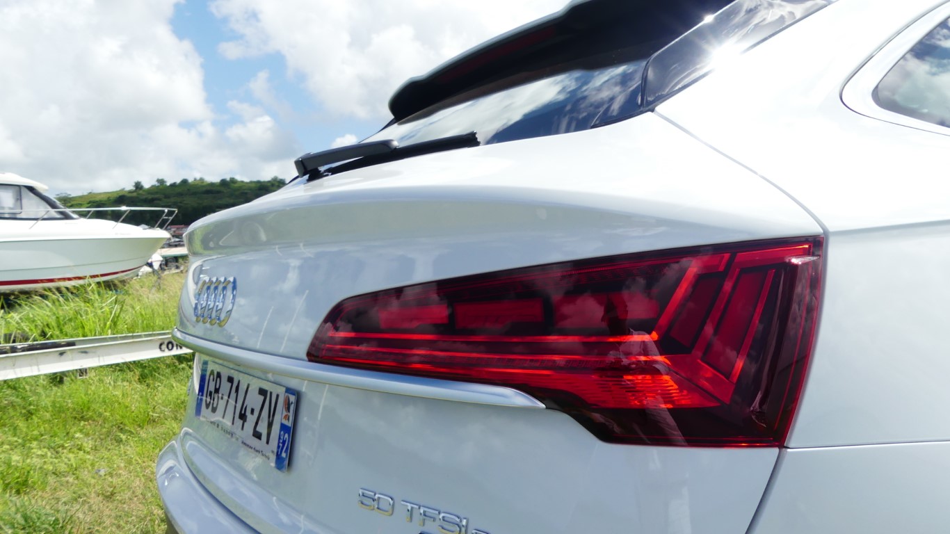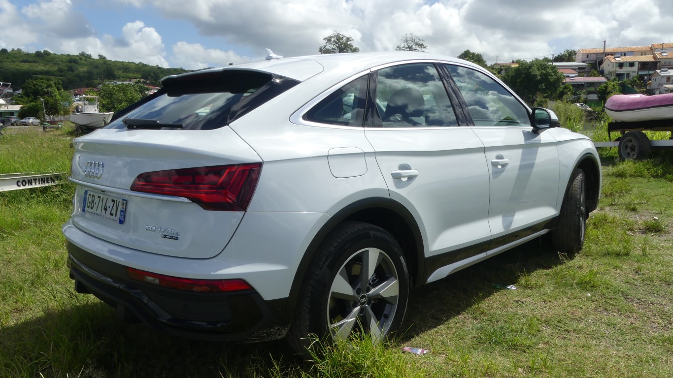 Sur la route je suis époustouflé par l’équilibre quasi parfait du Q5 TFSi-e qui allie agrément de conduite, et sportivité aussi grâce à l’AUDI Dive Select… La tenue de route tout comme la position haute du conducteur rassure dès la prise en main… L’Audi Q5 TFSi-e vire à plat sans complexe il impose la technicité du réglage chassis aux suspensions d’une rare efficacités... Le Q5-e se montre encore plus performant sur les petites routes sinueuses de Saint-Joseph, il s’accroche à l’asphalte et assure un maintient de voix digne de la réputation de son système Quattro... Notre motorisation hybride pour rappel est constituée d’un bloc thermique essence de 299 ch et d’un couple de 450 NM. L’Audi Q5 Sportback hybride n’aura aucun mal à se relancer ou à doubler quand le besoin s’en fera sentir. Difficile de trouver aussi efficient sur le marché mais c’est une histoire de choix et d’objectivité ma note est donc à la hauteur de mon essai… A vous de vous faire un avis définitif en tentant l’essai du Q5 50 TFSi-e chez AUDI Martinique il vient d’arriver ici !!!