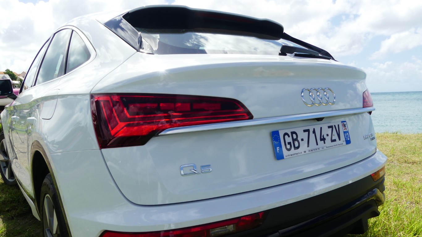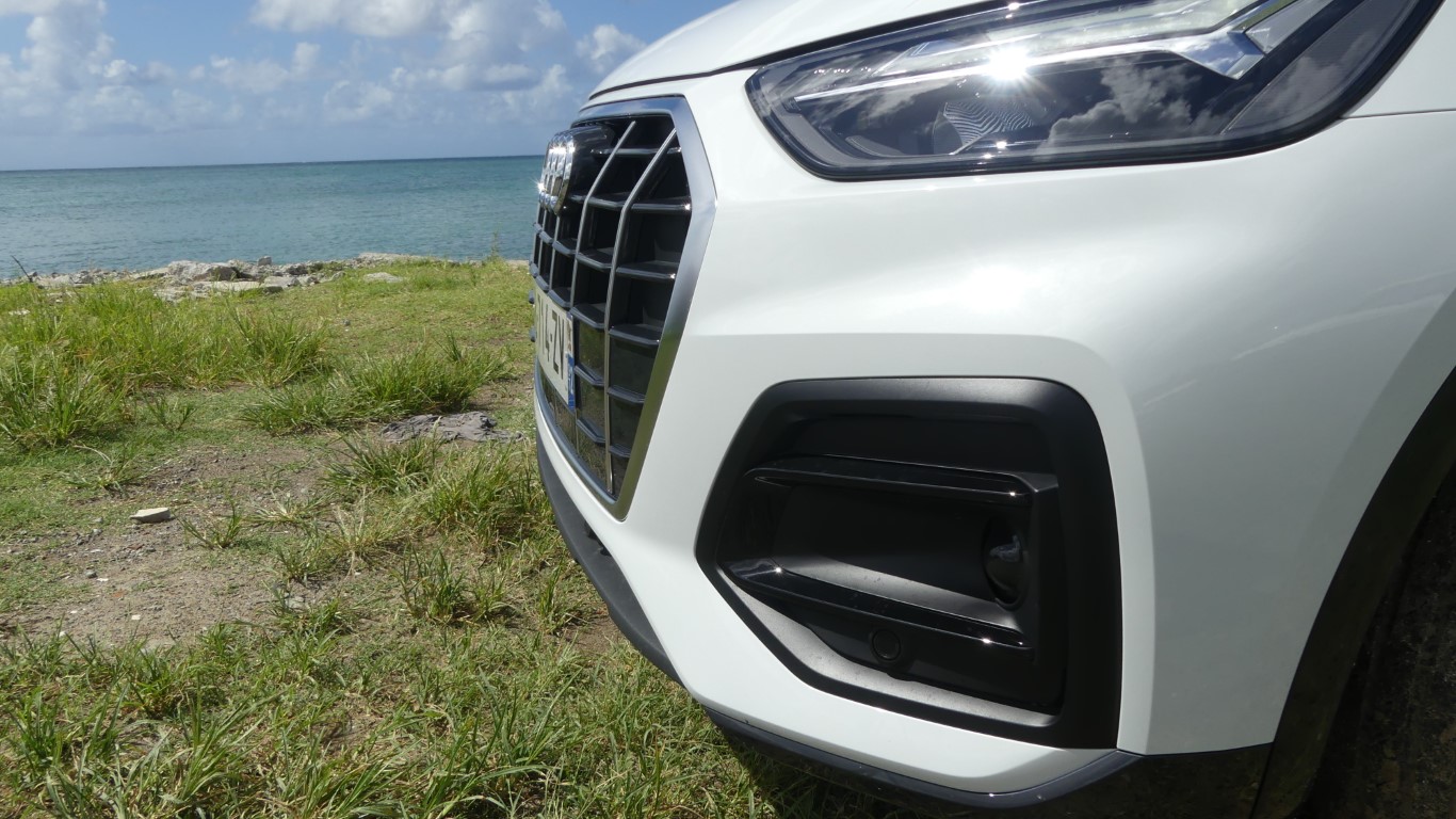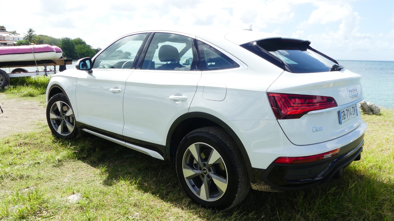 Sur la route je suis époustouflé par l’équilibre quasi parfait du Q5 TFSi-e qui allie agrément de conduite, et sportivité aussi grâce à l’AUDI Dive Select… La tenue de route tout comme la position haute du conducteur rassure dès la prise en main… L’Audi Q5 TFSi-e vire à plat sans complexe il impose la technicité du réglage chassis aux suspensions d’une rare efficacités... Le Q5-e se montre encore plus performant sur les petites routes sinueuses de Saint-Joseph, il s’accroche à l’asphalte et assure un maintient de voix digne de la réputation de son système Quattro... Notre motorisation hybride pour rappel est constituée d’un bloc thermique essence de 299 ch et d’un couple de 450 NM. L’Audi Q5 Sportback hybride n’aura aucun mal à se relancer ou à doubler quand le besoin s’en fera sentir. Difficile de trouver aussi efficient sur le marché mais c’est une histoire de choix et d’objectivité ma note est donc à la hauteur de mon essai… A vous de vous faire un avis définitif en tentant l’essai du Q5 50 TFSi-e chez AUDI Martinique il vient d’arriver ici !!!