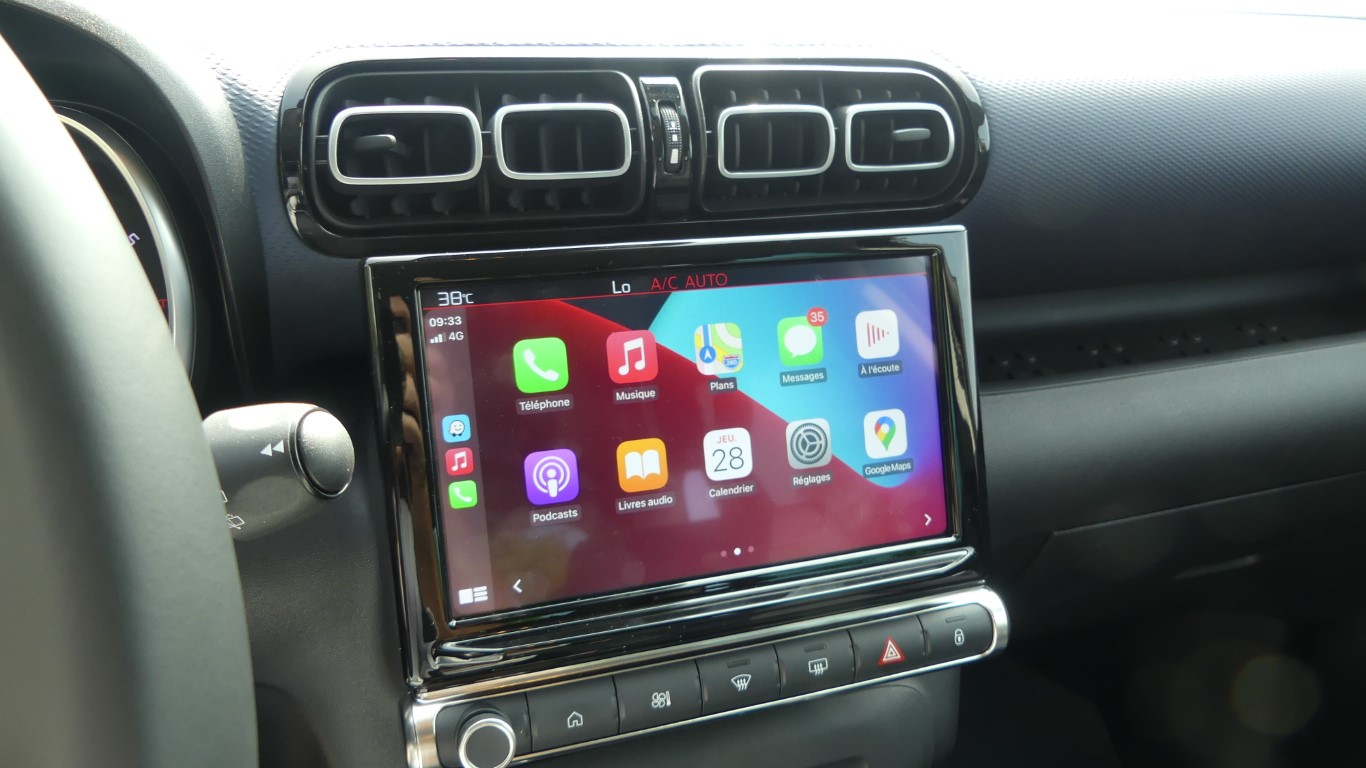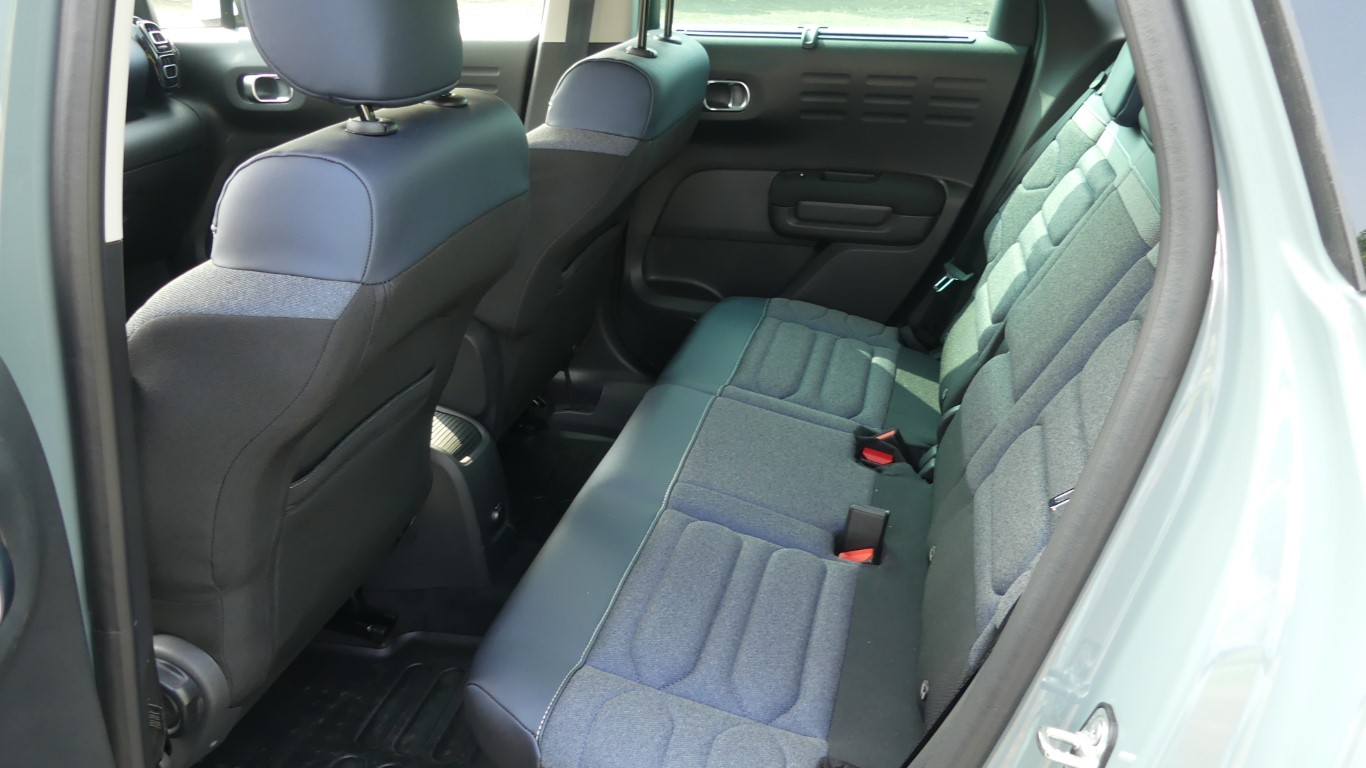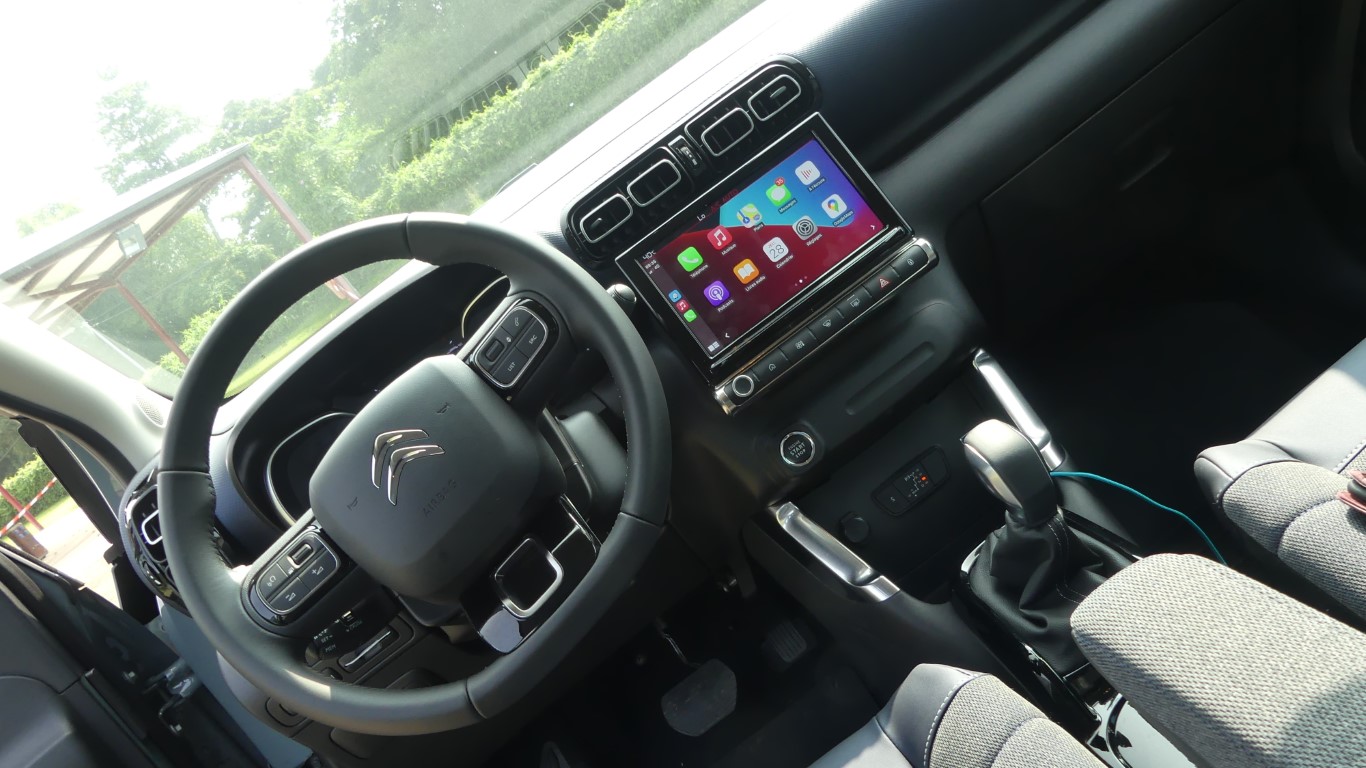 Outre les ambiances intérieures, le restylage du C3 Aircross s’accompagne de quelques nouveautés à bord : ainsi, l’écran tactile passe de 7 pouces à 9 pouces et la console centrale est revue grâce à un frein à mains affiné. Il permet de dégager l’espace pour deux porte-gobelets (ceux-ci disparaissaient auparavant avec l’option charge à induction), tandis qu’un grand rangement fermé apparaît sous l’accoudoir. En revanche, les porte-gobelets arrière disparaissent de l’accoudoir central, Citroën n’a pas oublié de faire quelques économies !La banquette arrière coulissante reste de série sur la seule version Shine Pack et reste optionnelle sur la série Shine.Les passagers arrière profitent toujours d’un espace plutôt généreux, sauf en largeur. La banquette coulisse toujours, mais uniquement sur les versions hautes. En fonction de sa position, la contenance du coffre varie de 410 à 520 litres, et atteint 1 289 litres avec la banquette arrière rabattue.