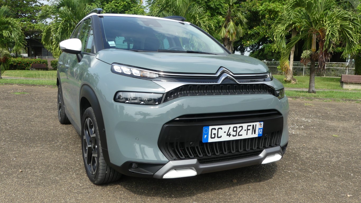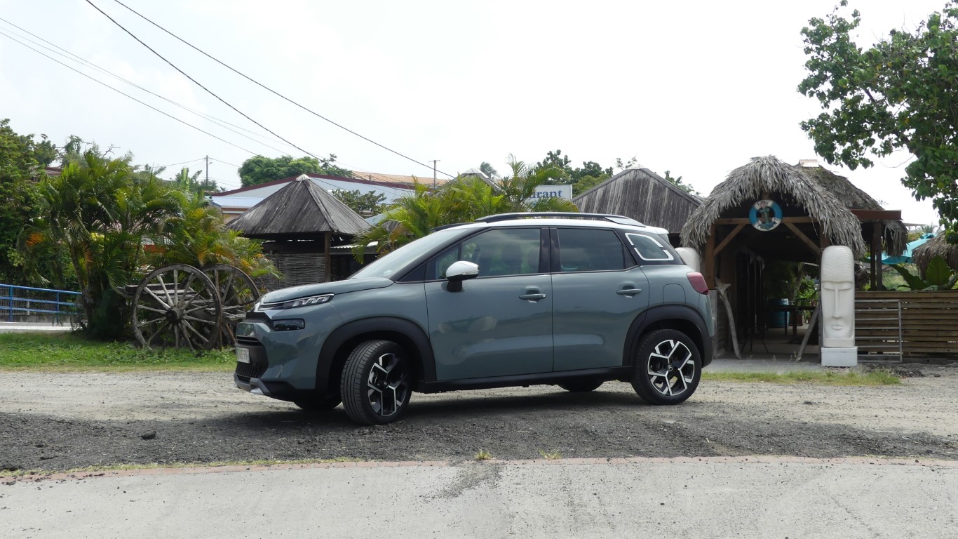 Nous sommes de retour chez Citroën Martinique à l’occasion de l ‘arrivée de la nouvelle C3 Aircross que nous retrouvons avec plaisir dans sa version shine PACK et sa motorisation Puretech 130cv associée à la boîte automatique EAT6Mise sur le marché en 2017 et écoulé à plus de 320 000 exemplaires depuis ce lancement, le petit SUV de la marque française s’offre un lifing pour aborder sa seconde moitié de carrière. Nouvelle face avant, nouveaux aménagements intérieurs, et surtout nouvelles couleurs… Mais toujours pas d’Airbumps ce qui la distingue définitivement de sa petite sœur, la C3 ! Décollage du Lamentin avec notre Citroën C3 Aircross nouvelle bouture.