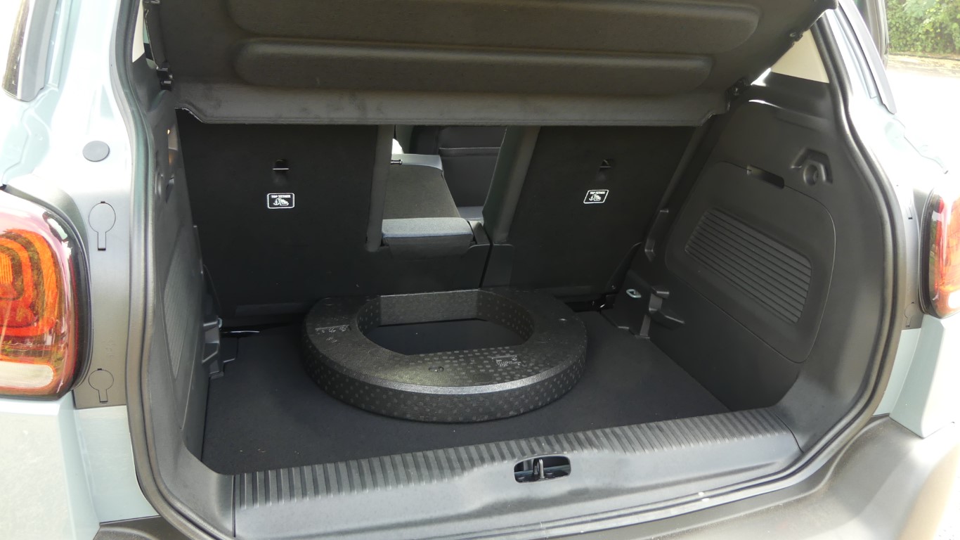 À l’arrière, Citroën n’a rien retiré… Mais n’a rien ajouté non-plus. Le C3 Aircross conserve ses feux à effet 3D, son grand hayon et ses décors de pare-chocs mêlant textures et couleurs. L’ensemble, très rond, tranche donc désormais avec la face avant plus anguleuse. À noter, le coffre dispose d’une astuce pratique, un rangement pour la plage arrière qui permet de la caler contre la banquette lorsque l’on souhaite charger des objets hauts.