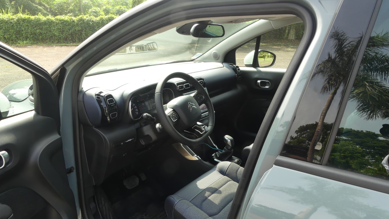 Avec le C3 Aircross on roule comme sur un nuage, dans le confort absolu et ce même avec les roues de 17 pouces qui rendent l’amortissement un poil plus ferme. Véritable leitmotiv de la marque aux chevrons, le confort se traduit par une suspension souple qui absorbe parfaitement les irrégularités de la chaussée et rien de mieux que certaines petites routes Martiniquaise pour définir avec précision la notion de confort ! Malgré une prise de roulis de temps à autre, le C3 Aircross conserve le cap et demeure très équilibré dans cette version essence qui ne charge pas trop le train avant. Le nouveau SUV Citroën C3 Aircross gagne aujourd’hui en maturité. Sans perdre de sa singularité, il monte en gamme et affirme son caractère avec une nouvelle expression de face avant ainsi que de nouveaux décors il est donc dans l’air du temps.