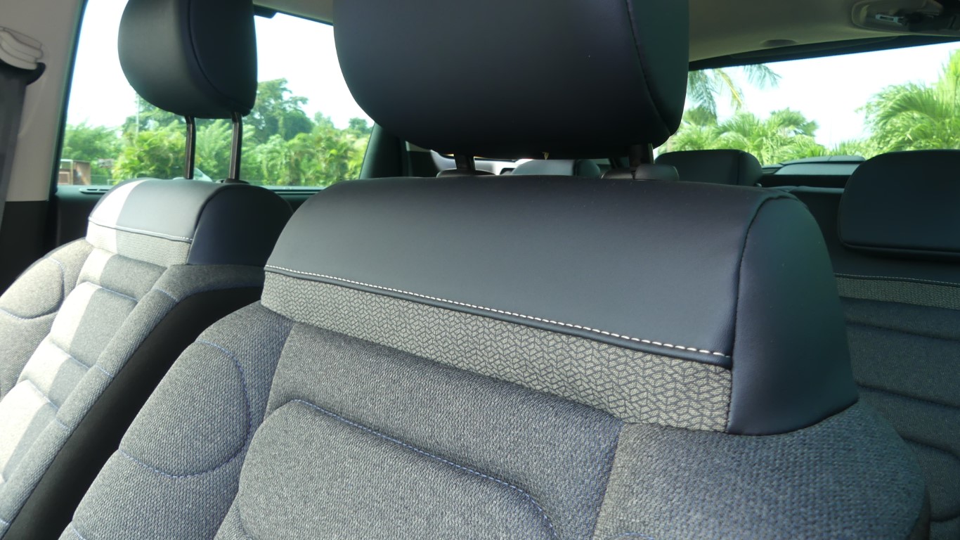 A l’instar de la nouvelle C3 restylée, le SUV C3 Aircross adopte les nouveaux sièges Advanced Comfort avec leur mousse d’accueil épaissie de 15 mm et les surpiqûres en forme de gélule… sur les ambiances optionnelles uniquement. Ainsi, l’ambiance de série reste inchangée avec ses sièges gris foncé et ses décors un peu… tristes. Mais en option, il y a donc matière à changer la donne, en plus de faire progresser le confort. Alors voici les trois ambiances optionnelles :