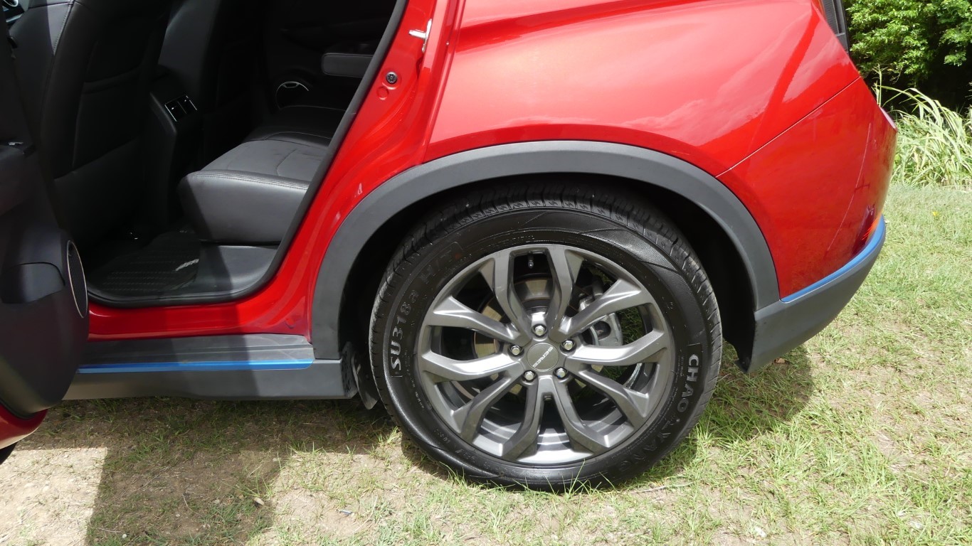 Pour un SUV dit urbain, le Seres 3 est plutôt bien en formes. Avec ses 4,38 m de long pour 1,85 m de large et 1,65 m de haut, ses dimensions le classent parmi les plus imposants SUV urbains de la catégorie. Ses lignes, quoique conventionnelles, tendent à valoriser son propriétaire avec des entourages de vitres en chrome, des jantes de 18 pouces (chaussées en 225/55/18) et des entourages d'ailes en plastique brut. Les flancs sculptés lui donnent une allure dynamique et son pavillon flottant l'inscrit dans les codes esthétiques actuels. En y regardant de plus près, la calandre pleine, teintée de bleu, est elle aussi caractéristique des véhicules électriques du moment.