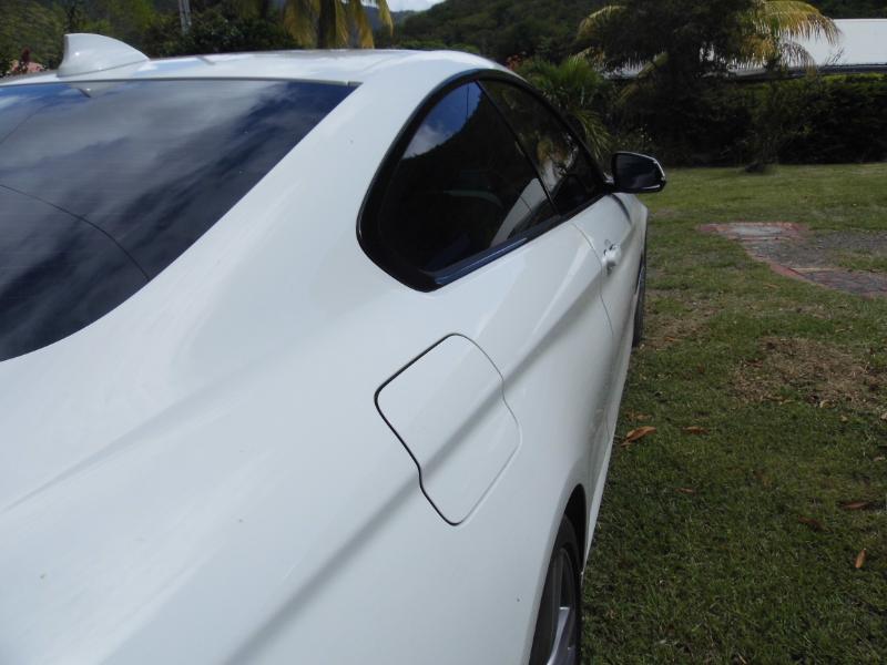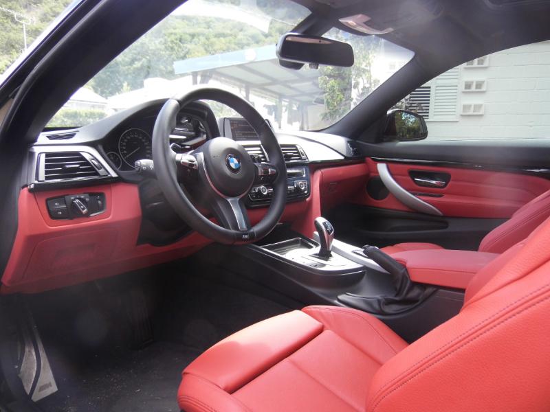 La position de conduite est très agréable. Le siège se règle dans toutes les positions souhaitées. La sellerie de ce modèle est un cuir rouge somptueux. Le volant est au toucher moelleux et de bonne taille. Les compteurs sont parfaitement lisibles mais on leur préféra l’affichage tête haute pour vérifier notre vitesse ou les données GPS. Au niveau des places arrière, nous sommes dans un coupé… Mais la 435i coupé offre plus de place que dans une A5 par exemple. L’intérieur est réussi globalement, nous sommes simplement dans une belle voiture qui n’a pas pris le risque d’avoir un défaut. La touche de technologie La 435i profite donc de l’esprit« connected » pour utiliser la technologie au service du conducteur : l’affichage tête haute déjà mentionné, un écran de 8,8 pouces pour lire plus précisément les indications du GPS ou l’ordinateur de bord… Le disque dur est de 20go. Le conducteur peut dicter ses sms et emails ou connecter 3 trois périphériques Bleutooth en même temps. La 435i est équipée du nouveau systèmeiDrive Touch (la molette pour le contrôle). On aurait préféré un écran tactile mais cela est une question de goût. Côté motorisation Sous le capot, le six cylindres en ligne 3.0 turbo Valvetronic et injection directe de la précédente génération est reconduit, fort de 306 chevaux et d’un couple généreux de 400 newtons-mètres disponible sur pratiquement toute la plage de régime. Un moteur qui nous montre qu’il est capable de performances du plus haut niveau (passer sous la barre des 5 secondes au 0 à 100 en version intégrale xDrive et sa boîte 8 auto !) et d'offrir une sonorité très sympathique au monde extérieur!!! Question consommation, la maîtrise du constructeur bavarois s’applique une fois de plus avec une moyenne normalisée à 7,6 l/100 km. De plus, parmi les différents modes de gestion moteur, transmission et trains roulants disponibles au choix, le moteur est capable de récupérer une partie de l’énergie au freinage en mode Eco Pro. Le mode Confort est lui le plus adapté pour la conduite quotidienne car, dès le mode Sport, la suspension se raffermit sérieusement et le confort en pâtit, tandis qu’en mode Sport +, les limites d’intervention de l’ESP sont repoussées et le contrôle de traction dynamique est activé, parfait pour passer en mode attaque. Question conduite On à la chance d’avoir en Martinique pour les trajets mixtes notre «bouchonnante» rocade qui nous mènera en sortantde chez BM comme d’habitude route de la trace puis sur les mornes qui nous conduirons à Saint-Pierre…On a découvert rapidement un excellent étalement de la boite qui est décomposé en 3 modes : Eco Pro, Confort et Sport. En mode Eco Pro, la puissance est délivrée de façon à limiter votre consommation, des conseils vous sont donnés; par exemple : réduire votre vitesse avant l’approche d’un panneau de limitation de vitesse. Le mode Confort est l’utilisation de tous les jours. On ressent mieux la puissance linéaire de la propulsion. Le mode Sport (Sport+ sans ESP) qui nous permet de se délecter des montées en régime pleines. Dans ces trois modes, on regrettera le mode Eco qui force une conduite trop molle qui est un paradoxe au vu des capacités de la 435i. On lui préféra le mode Confort conduit avec souplesse pour atteindre des consommations raisonnées. Le mode Sport permettra de rompre avec une conduite sage, mais attention les consommations seront aussi en hausse. Selon les différents modes, nous avons atteint des consommations moyennes de 6,9 l/100 à 8.2l/100. Au niveau des performances, les chiffres parlent d’eux mêmes, La i435 en version Coupé M Sport atteint le 0 à 100 en 5,1 secondes pour une vitesse maximale bloquée à 250km/h. En bref une voiture luxueuse sans défauts qui s’adapte à toutes les routes Martiniquaises, les avales avec volupté et discrétion et... 306 ch… Demandez votre essai gratuit chez BCAM de la BMW 435i ici !!! La fiche : Equipements ABS