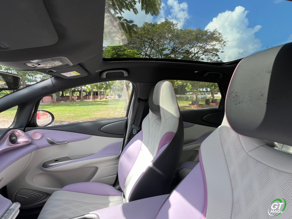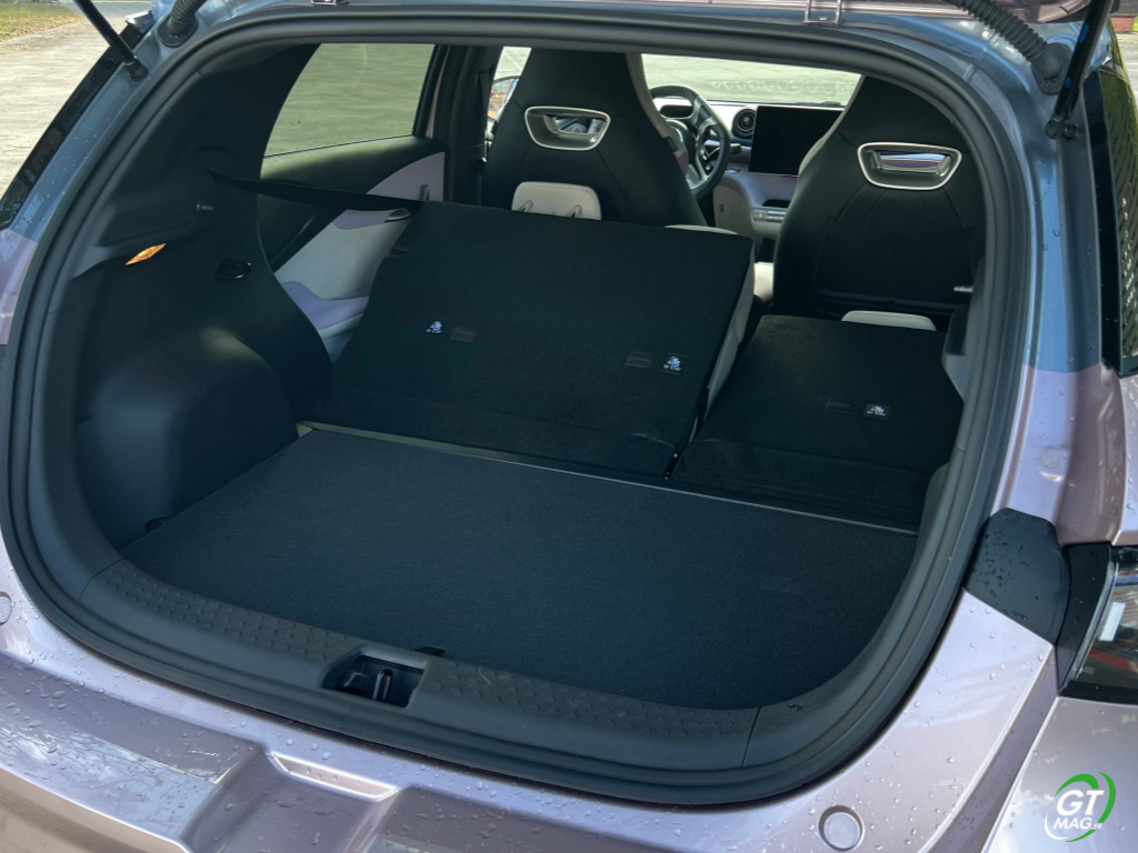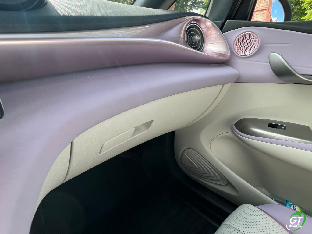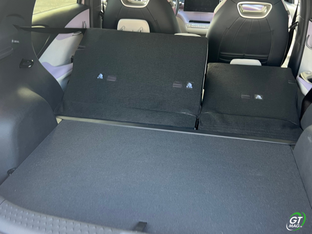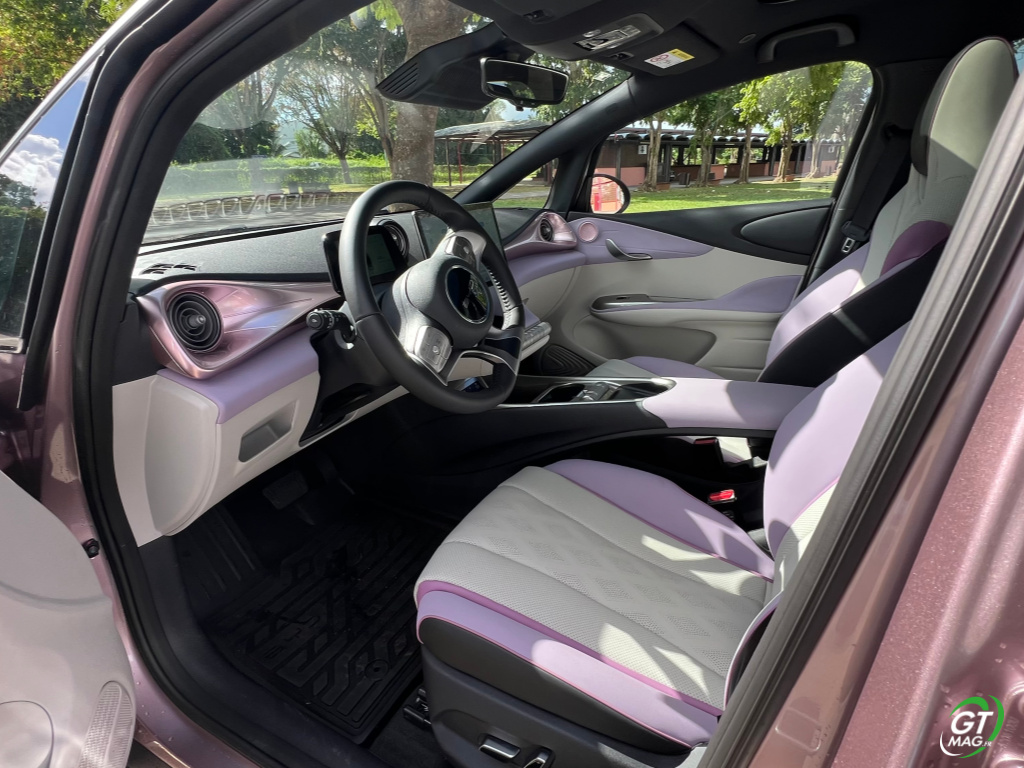 L’intérieur est surprenant compte tenu de la qualité des matériaux et très bien doté… On a peine à croire que l’on est dans une chinoise… Le toit panoramique de notre version Design est des plus agréable… Les sièges sport intégrés offrent un vrai confort avec un soutien latéral perfectible. Les sièges du Dolphin sont fabriqués en cuir végétal durable, offrant une solution écologique que la marque a su développer sans laisser de côté leur style. Grâce aux réglages multiples, vous pouvez personnaliser votre siège en fonction de vos besoins. L’écran central est rotatif, « oui Madame, il fallait y penser », il permet avec 12.3 pouces de belles connectivités multimédias… Un écran "motorisé" donc qui peut passer du format portrait au format paysage en un clic… Au total, 20 espaces de rangements proposés par le Dolphin BYD c’est juste top… Le coffre de 345 litres passe à 1 310 litres lorsque les deux sièges arrière sont rabattus.
