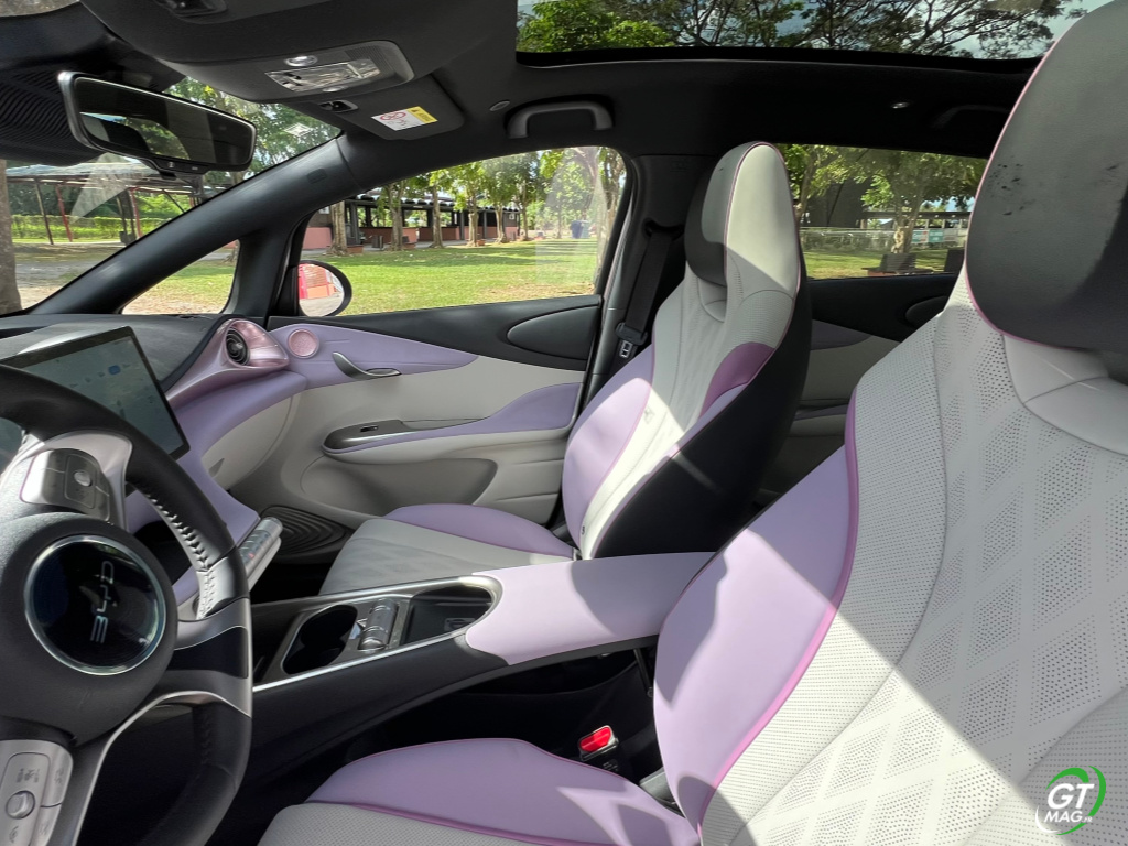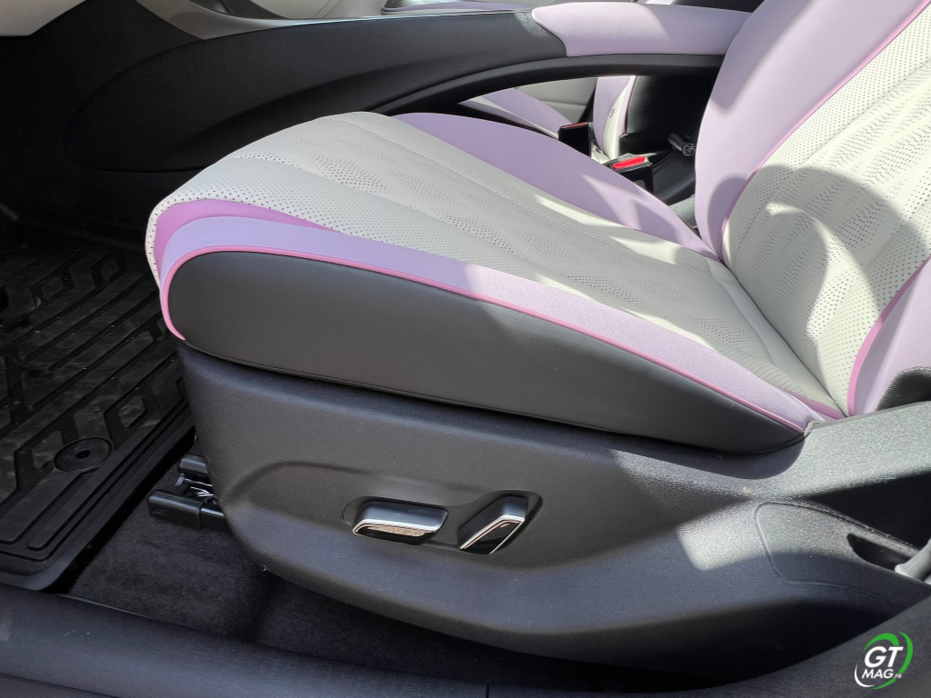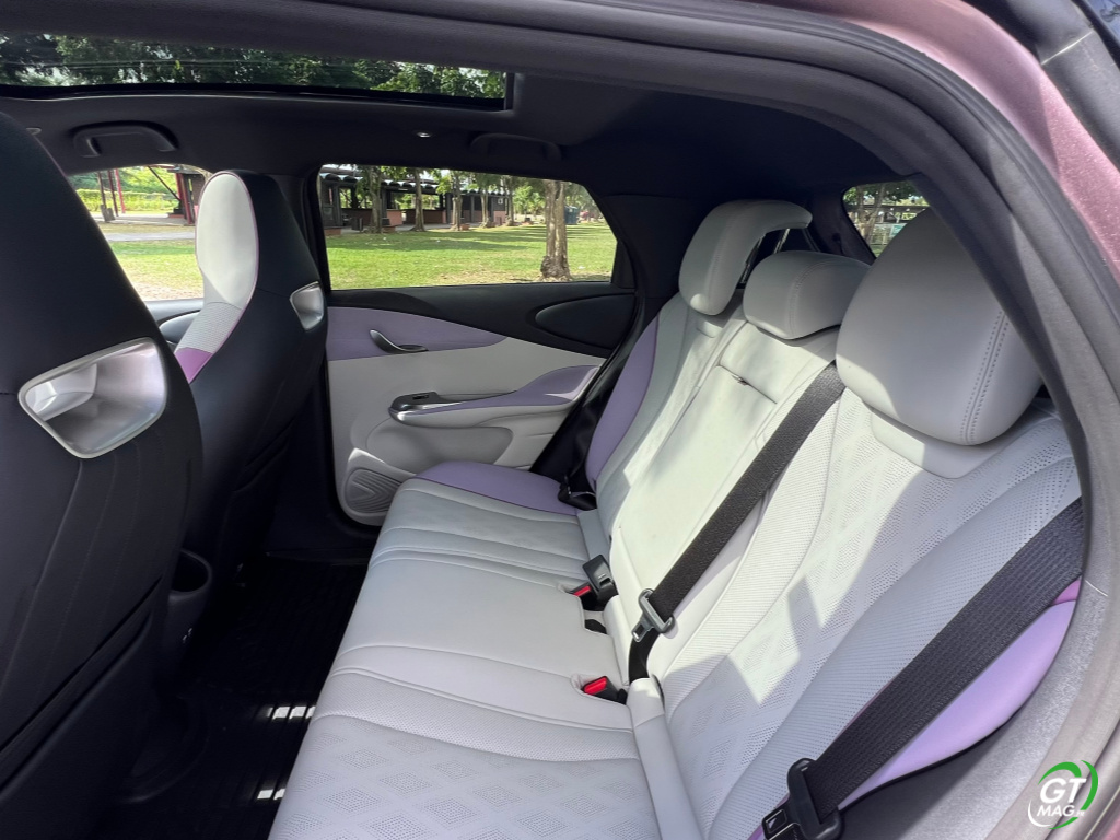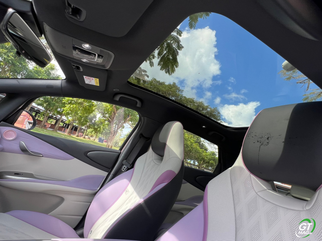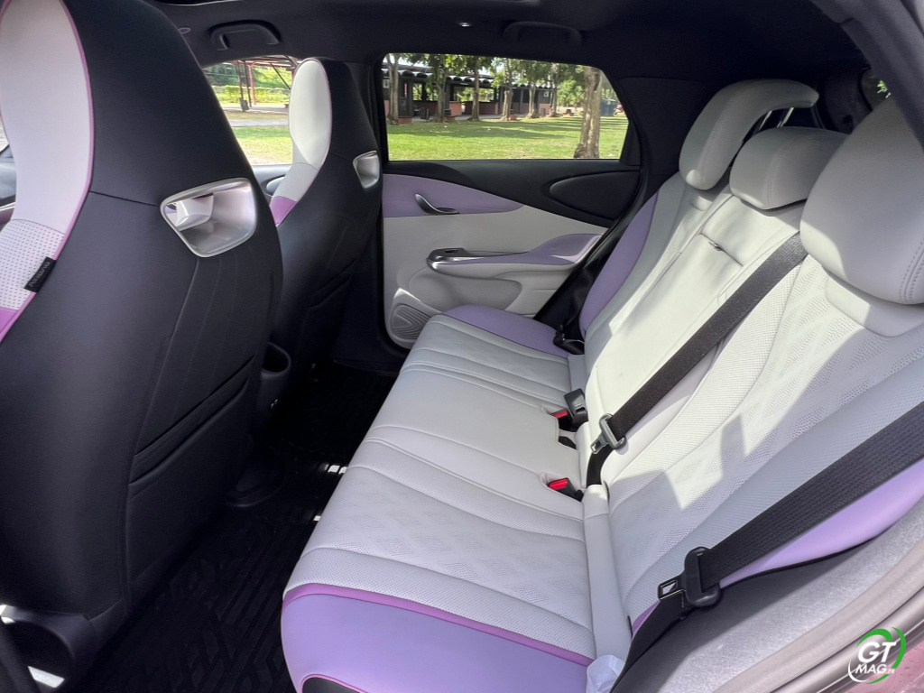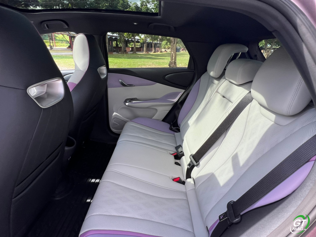 L’intérieur est surprenant compte tenu de la qualité des matériaux et très bien doté… On a peine à croire que l’on est dans une chinoise… Le toit panoramique de notre version Design est des plus agréable… Les sièges sport intégrés offrent un vrai confort avec un soutien latéral perfectible. Les sièges du Dolphin sont fabriqués en cuir végétal durable, offrant une solution écologique que la marque a su développer sans laisser de côté leur style. Grâce aux réglages multiples, vous pouvez personnaliser votre siège en fonction de vos besoins. L’écran central est rotatif, « oui Madame, il fallait y penser », il permet avec 12.3 pouces de belles connectivités multimédias… Un écran "motorisé" donc qui peut passer du format portrait au format paysage en un clic… Au total, 20 espaces de rangements proposés par le Dolphin BYD c’est juste top… Le coffre de 345 litres passe à 1 310 litres lorsque les deux sièges arrière sont rabattus.