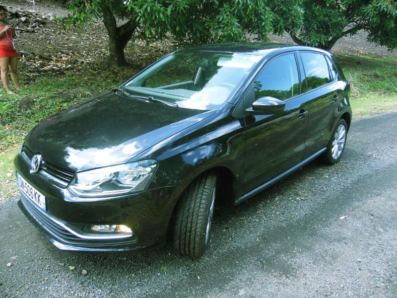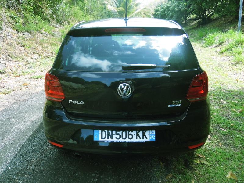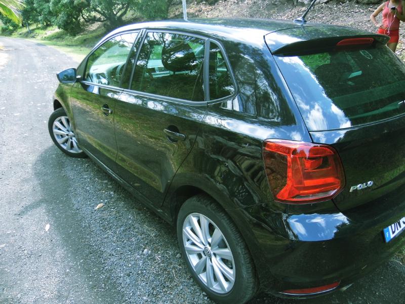 nous conforte dans l’idée que nous entrons dans une petite Golf… Oui mais… Si la firme de Wolfsburgsemble ne pas trop changer les lignes si connues et apprécier de la petite VW, elle propose aux aficionados du modèle une véritable et grande révolution sous le capot et en terme de sécurité active… Sur un marché très porteur Volkswagen retouche légèrement les lignes extérieures de sa citadine polyvalente histoire de la rajeunir quelque peu mais vise manifestement sur ce segment à grimper d’un cran sur la qualité d’équipement et la motorisation… Bien vu… Pas de révolution esthétique donc. Pour la touche premium, la Polo restylée gagne des baguettes chromées entre les antibrouillards et sur la calandre. Alors que pour la touche sportive, les boucliers avant/arrière ont légèrement été des bi-Xénon à LEDs en option… Les plus gros changements ont lieu sous le capot avec l’apparition du trois-cylindres 1.0 de la Up (60 ou 75 ch) en entrée de gamme.Les 1.2 TSI 90 et 105 ch seront remplacés par de prometteuses versions turbo du trois-cylindres 1.0 (90 et 110 ch), réponsedu groupe Volkswagen au 1.0 Ecoboost de Ford et aux 1.2 THP de PSA.Le 1.4 TSI ACT (désactivation partielle des cylindres) de laPolo BlueGTvoit sa puissance passer de 140 à 150 ch (comme sur sa cousineSeat Ibiza ACT). Enfin, les optiques avant et arrière ont été redessinées, les projecteurs antérieurs gagnant même des motorisations répondent à la norme Euro 6. Du côté du Diesel, des trois-cylindres 1.4 TDI délivrant 75, 90 et 105 ch remplaceront les quatre-cylindres 1.2 TDI et 1.6 TDI. La Polo BlueMotion 75 ch passe de 3,4 l/100 km et 88 g/km à 3,2 l et 82 g, tandis que la BlueMotion 75 ch, qui perd un cylindre et 400 cm3, tombe de 4,3 l et 112 g à seulement 3,4 l et 89 g. Une BlueMotion essence fait également son apparition. Basée sur le 1.0 TSI 90 ch, elle revendique 4,1 l et 94 g (contre 4,9 l et 113 g pour l’ancienne 1.2 TSI, qui ne portait pas ce label écologique). Au chapitre des équipements, Volkswagen gratifie la Polo du système multimédia avec écran tactile capacitif de la Golf, mais aussi de l’impressionnant arsenal d’assistance à la conduite étrenné par la compacte : régulateur auto-adaptatif avec freinage automatique d’urgence jusqu’à 30 km/h, feux de routes automatiques, alerte de franchissement de ligne, détecteur de vigilance… On trouve également en option une inédite suspension adaptative dotée d’un mode Sport. Avec ses 90 ch sous le capot la Polo1.2l TSI traîne un peu en reprise sur les montées de Case Pilotemais nous sommes forcés de reconnaître que la voiture présente un bel équilibre et une répartition de poids quasi parfait… La Polo est une voiture très sure et sans doute la plus technophile de la catégorie… Nous avons pris plaisir à la montrer de droite et de gauche sur les routes de MartiniquePrenez rendez-vous ici pour essayer la nouvelle POLO chez AUTOSGM !!! La fiche :