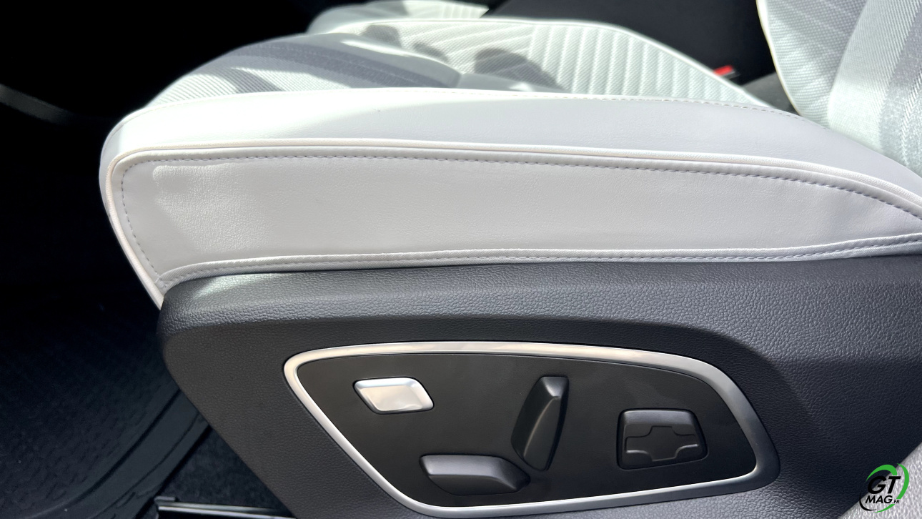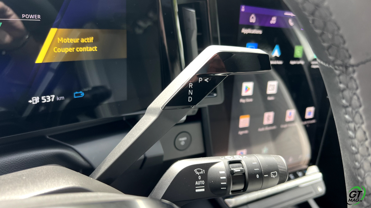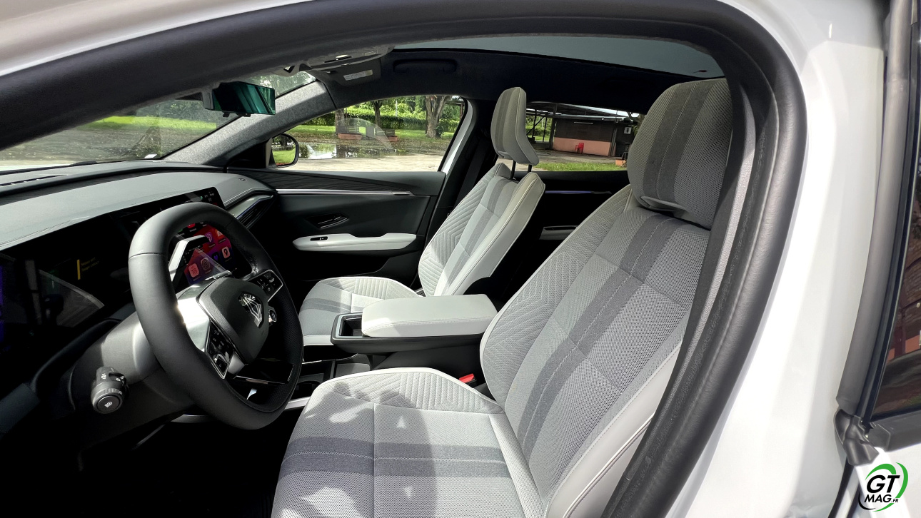 À l’intérieur, le constat est le même : la planche de bord – empruntée à la Mégane E-Tech – fait le plein de style et de technologies. Elle se compose de deux écrans de 12 », disposés en forme de L. Les équipements multimédia se commandent aisément et les rares commandes physiques permettent de contrôler facilement certaines fonctionnalités, dont la climatisation. La présentation globale se veut relativement soignée, bien que les plastiques puissent paraitre un peu durs à certains. Notons d’ailleurs que la 5e génération du Renault Scénic abandonne totalement le cuir, y compris dans ses versions haut de gamme, au profit de matériaux recyclables et recyclés. 40% de matériaux sont d’ailleurs recyclables dans le Scénic E-TECH !