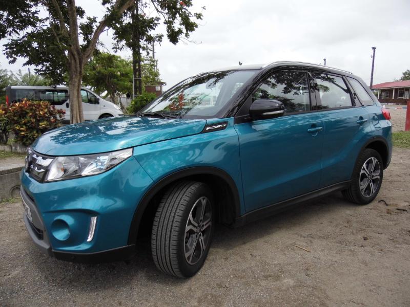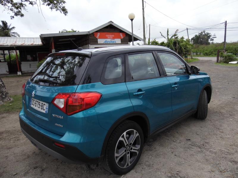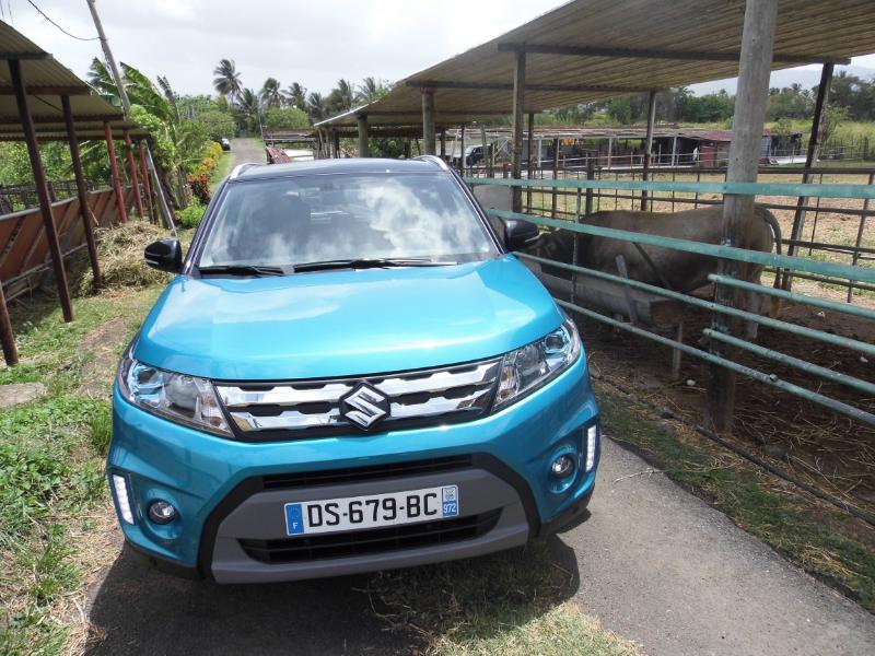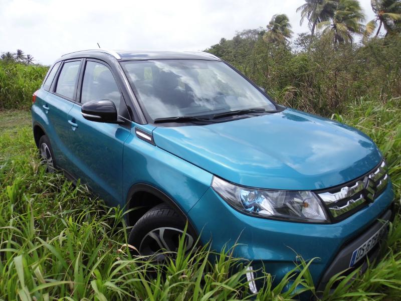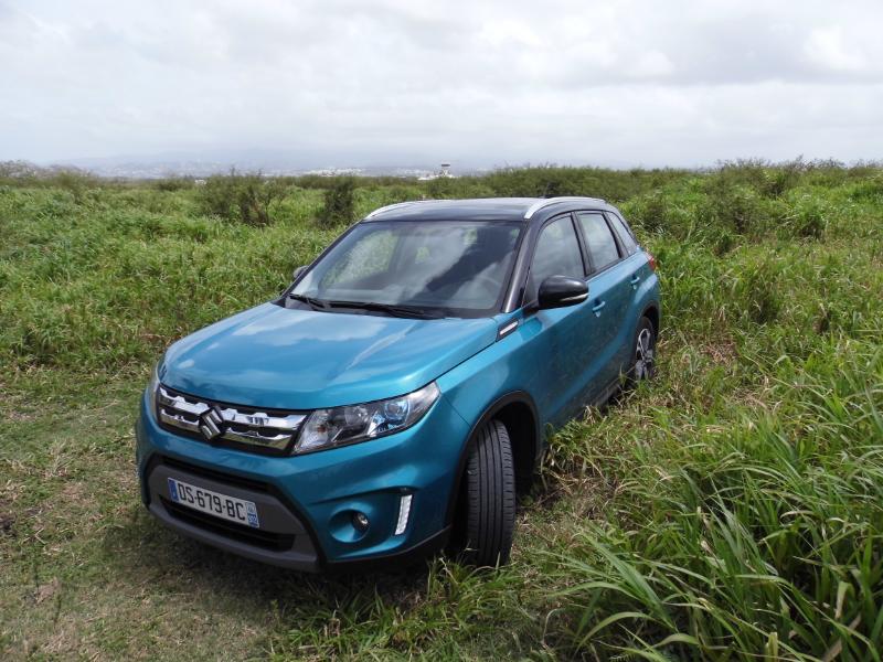 La 4ème génération de ce dernier qui voit le jour offre tous les ingrédients pour connaître une belle carrière par son allure martiale et sa polyvalence proposée par une transmission traction ou intégrale. Johan Petitprés organisateur commercial chez CCIE nous indiquant que vue la faible consommation du Vitara essence 1.6 120 Din de 6ch soit 4.5l à 7.8l la version diesel n’est pas au programmesur notre île… Côté ligne voyez les photos… Par sa forme carrée et trapue, le nouveau Vitara semble imposant, et pourtant, il ne mesure que 4,17 m. Sa silhouette empreinte de robustesse ne manque cependant pas d'élégance grâce à une ligne de toit légèrement plongeante et des boucliers savamment dessinés améliorant l'aérodynamisme, mais aussi à la possibilité d'un choix de teintes bi-colores bienvenues. La personnalisation est d'ailleurs à l'ordre du jour avec les options de la calandre noire, blanche ou chromée et les garnitures d'ailes noires ou blanches. De même, l'habitacle s'adapte aux goûts des propriétaires avec l'insert de tableau de bords et les entourages d'ouïes de ventilation proposés en turquoise, orange, blanc ou noir laqué. La planche de bord, au dessin conventionnel et parfaitement fonctionnel, reçoit en son centre un grand écran GPS bien lisible. La banquette arrière se replie en 40-60 pour former un grand plancher plat. Enfin, son toit panoramique offre l'une des surfaces ouvrantes les plus vastes de sa catégorie. Le Vitara reprend la plate-forme du S-Cross, mais avec un empattement raccourci de 10 cm, et ses motorisations remaniées pour souscrire aux normes Euro 6, à savoir les 1,6 litre essence notre essai en version GLX+ avec toit ouvrant et le All grip et Diesel de 120 ch, associés à des boîte mécanique à 5 rapports pour le premier et 6 rapports pour le second. Cependant, la boîte CVT réservée à la motorisation essence est remplacée avec bonheur par une nouvelle boîte à convertisseur de couple à 6 rapports fournie par le japonais… Ravi d’accueillir un enfant aussi extraverti, Stéphane Magnin, le Directeur commercial de Suzuki France, estime qu’il possède toutes les qualités requises pour «entretenir la légende». Une chose est certaine, le Vitara débarque au moment opportun. Faut-il le rappeler, une voiture sur cinq vendue dans l’hexagone est un SUV. Produit en Hongrie(commela Swift et le S-Cross), il apparaît déjà comme un pilier incontournable d’une croissance qui devrait permettre àSuzuki d’atteindre le seuil des 30.000 immatriculations en 2017. Le gros avantage du Vitara, que n'ont pas ces derniers, c'est la version 4x4 qui transforme le Vitara en vrai baroudeur grâce à son système Allgrip proposant quatre modes que le conducteur peut sélectionner en fonction du type de route et des conditions de conduite lui assurant une motricité maximale. De quoi affronter la boue, les mornes et les chemins défoncés. Le mode Lock, par exemple, répartit le couple en 50/50 sur les trains de roulement et fait usage d'un différentiel à glissement limité freinant toute roue qui patine et transfère le couple à celles offrant une bonne adhérence. Sécurité et modernité Le mode Sport, quant à lui, modifie le temps de réponse de l'accélérateur pour augmenter la nervosité et transfère du couple sur le train arrière pour une meilleure motricité. En mode Auto, le Vitara fonctionne en deux roues motrices et envoie jusqu'à 50 % du couple sur le train arrière, seulement en cas de besoin. Une transmission intégrale est considérée comme un élément de sécurité, maisle Vitara en ajoute d'autres selon ses finitions comme un radar avant permettant le déclenchement d'un freinage autonome lorsqu'un obstacle est détecté à basse vitesse, ou le maintient d'une distance de sécurité avec le véhicule précédent lorsque le régulateur de vitesse est enclenché. À noter quele nouveau Vitara n'est pas en reste dans le domaine des technologies modernes avec un système audio doté de connexion de smartphone permettant d'accéder à des dispositifs de navigation évolués. Sur les sentiers bien choisis de Carrère après une posechez hyppocampe le centre équestre bien connu le Vitara absorbe sans broncher les déchiruresdes champs de cannes et les dénivellations imposées avec force… Le nouveau Vitara rigole, nous aussi, c’est très bon signe… Snif... Retour chez CCIE... Pour essayer gratuitement chez CCIE le Vitara nouvelle génération appuyez ici !!! A lire également sur le sujet :