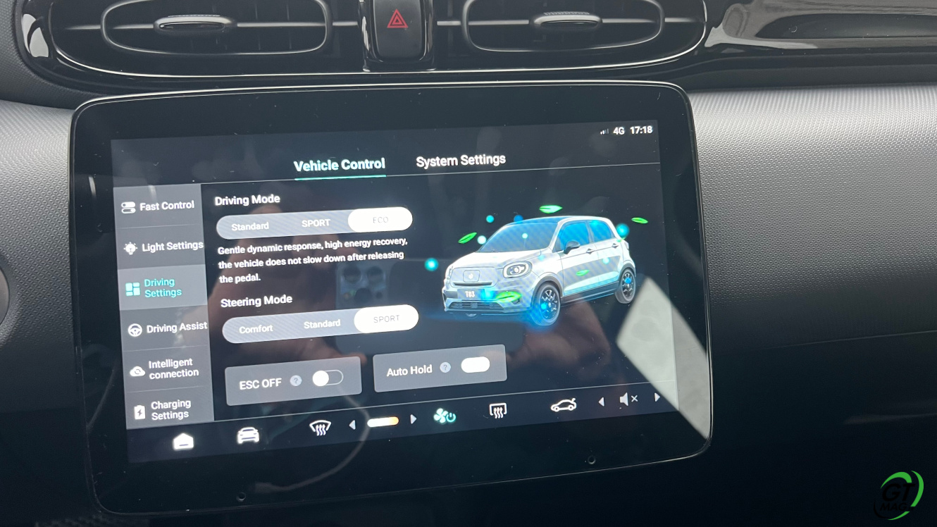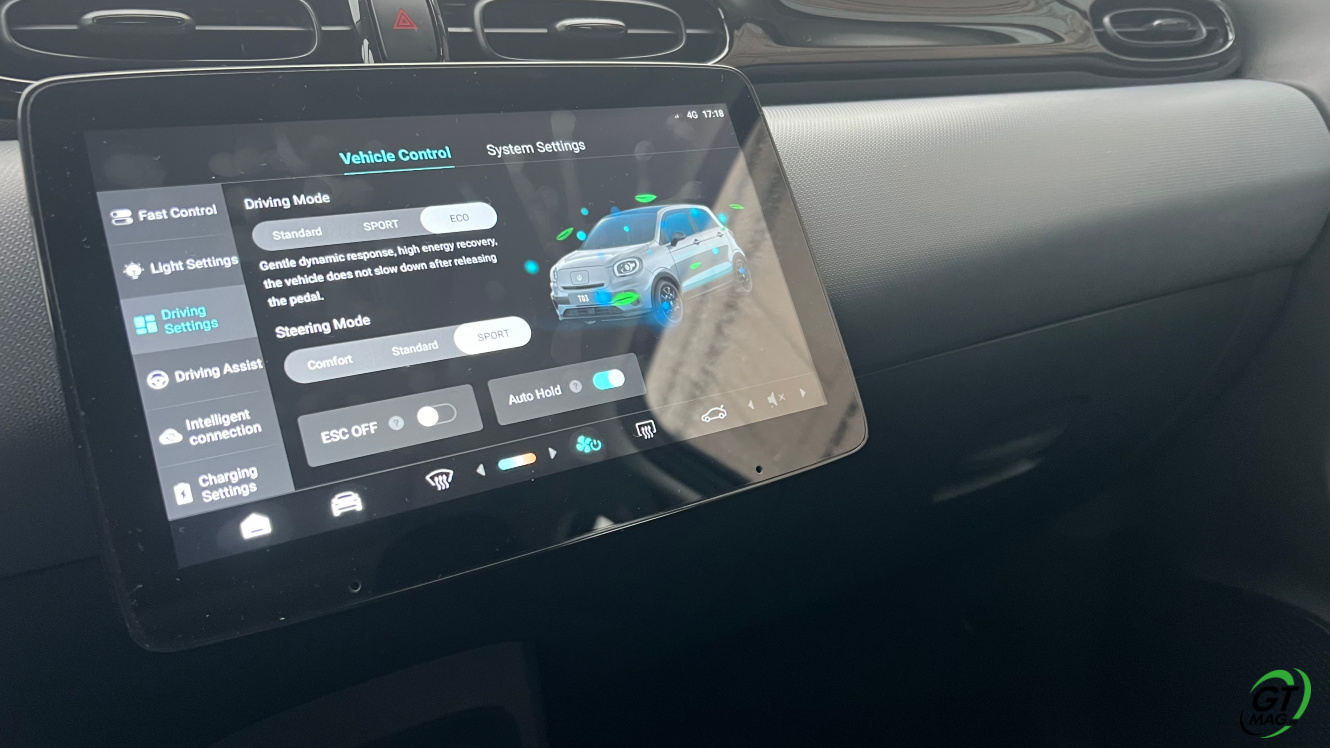 Il faudra faire sans Android Auto ni Apple CarPlay et oui… 10 systèmes d'aide à la conduite de dernière génération sont malgré tout bien là (ACC, CCS, FCW, AEB, LDW, ISA, BSD, DOW, LKA, DDAW, verrouillage en cas d'alcoolémie positive)… Vous aurez également le Frein à main électrique, la climatisation automatique, le volant en cuir synthétique, les rétroviseur à réglage électrique, les vitres avant et arrière électrique, une clé Bluetooth, un capteur de stationnement arrière et la caméra de recul, un toit panoramique avec pare-soleil électrique Côté Info-divertissement une interface intuitive avec écran de 8', une console centrale 10' pas très fonctionnelle avec navigation, le Wi-Fi et 4G, Un contrôle des applications, des jantes en alliage de 15 pouces, 2 airbags conducteur et passager avant + 2 airbags latéraux avant + 2 airbags latéraux arrière