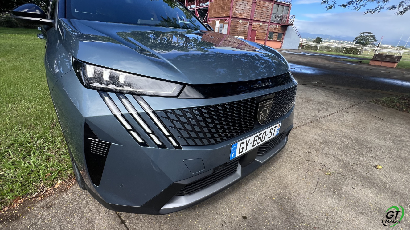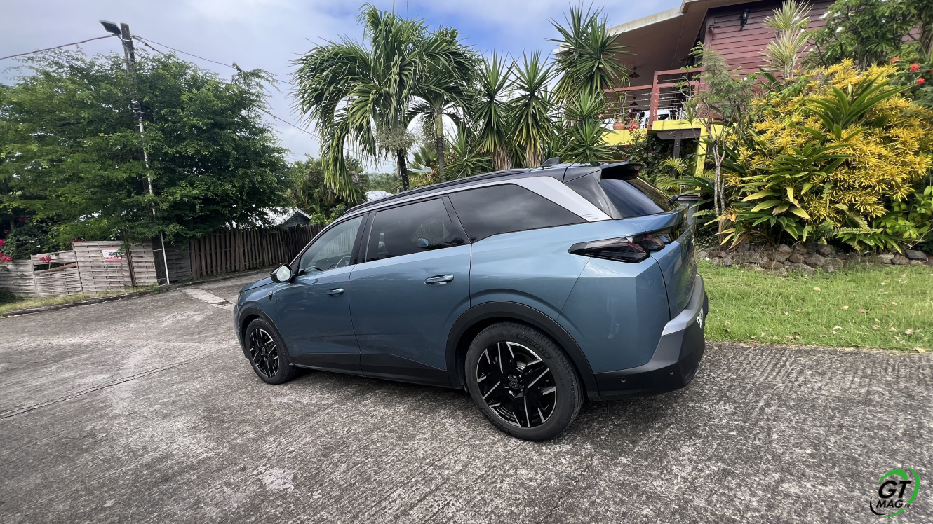 Le 5008 hybride GT se distingue également par une carrosserie longue et imposante qui offre une présence affirmée sur la route tout en optimisant l’espace intérieur. Le Peugeot 5008 reste fidèle à ses racines de SUV familial, avec une silhouette conçue pour maximiser l’espace de vie sans sacrifier l’esthétique. L’équilibre entre praticité et style fait de ce SUV un choix idéal pour les familles qui recherchent un véhicule polyvalent, adapté à la fois aux trajets quotidiens et aux escapades plus longues. En Martinique et en Guadeloupe le confort par l’usage quotidien se démarque le véhicule s’adaptant plus que bien à nos routes secondaires parfois hors normes… e volume de coffre du 5008 atteint les 259 litres en configuration 7 places. Bien sûr, ce volume peut être augmenté en rabattant les sièges passagers. Avec la troisième rangée de sièges rabattue, le volume de coffre atteint 748 litres. En configuration 2 places, il offre 1815 litres de volume utile.