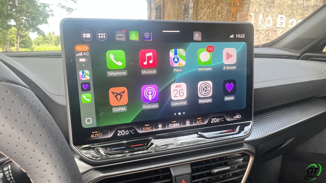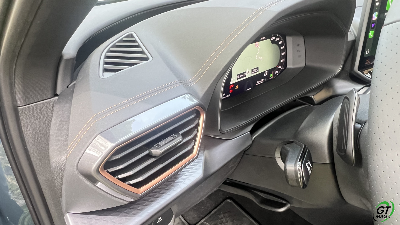 Sa boîte double embrayage de série qui ne nuit aucunement à une consommation moyenne de 6,4 l/100 km, avec un conduite sereine sur notre rocade et notre autoroute. On descendre la consommation à 5,5 l entre nos bourgs sur route secondaires où le fonctionnement sollicite moins le moteur qui désactive alors deux cylindres et fait jouer l’alterno-démarreur 48 V avec sa petite batterie lithium-ion. Ce Formentor est homologué à 130-139 g avec un malus de 310 euros en 2024, c’est acceptable. Et on retrouvera toutes les qualités de fabrication et de finition premium du Formentor PHEV.