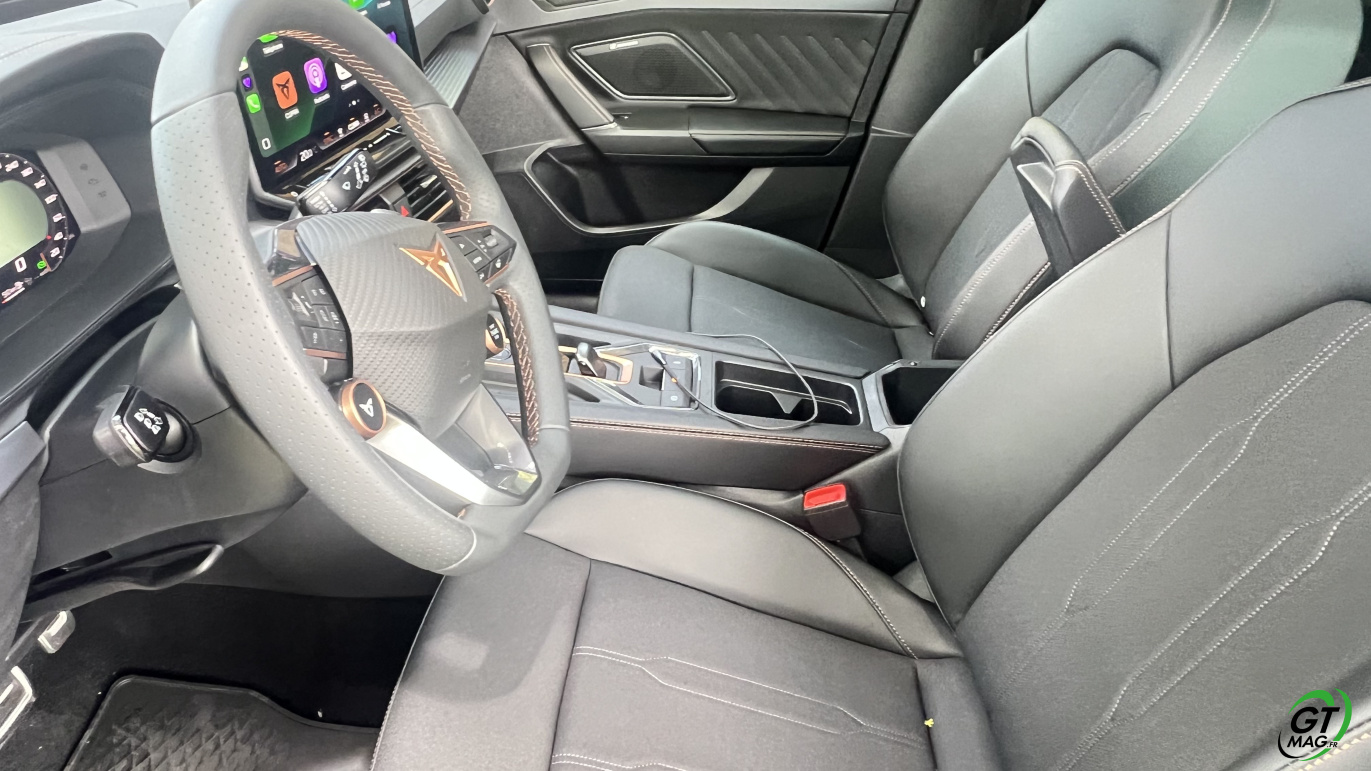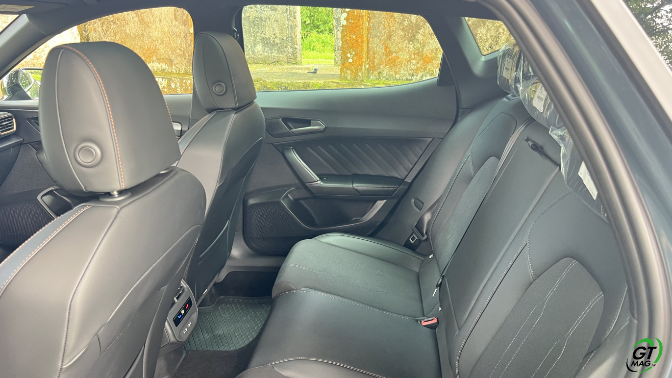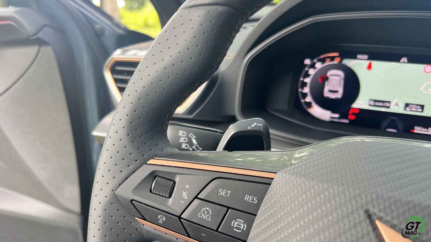 Avec ce moteur, le Formentor est uniquement disponible avec une seule finition dénommée « V », qui correspond à l’entrée de gamme, mais qui se révèle particulièrement complète. Elle se compose des vitres arrière surteintées, des projecteurs Full LED, du volant sport chauffants avec commandes et palettes, les détails intérieurs cuivrés, la banquette arrière rabattable, le digital cockpit 10,25 pouces, le système multimédia 12,9 pouces, la recharge par induction, la connectivité AppleCarplay et Androïd Auto sans fil, le système audio avec 6 HP, le régulateur de vitesse et les projecteurs adaptatifs, la détection de fatigue, l’aide au maintien dans la voie, la reconnaissance des panneaux de signalisation, l’aide au stationnement avant et arrière avec caméra de recul, le système de pré-collision, le hayon mains-libres et l’accès et le démarrage sans clé. A vous de voir et de l’essayer maintenant…