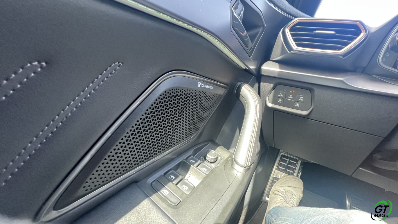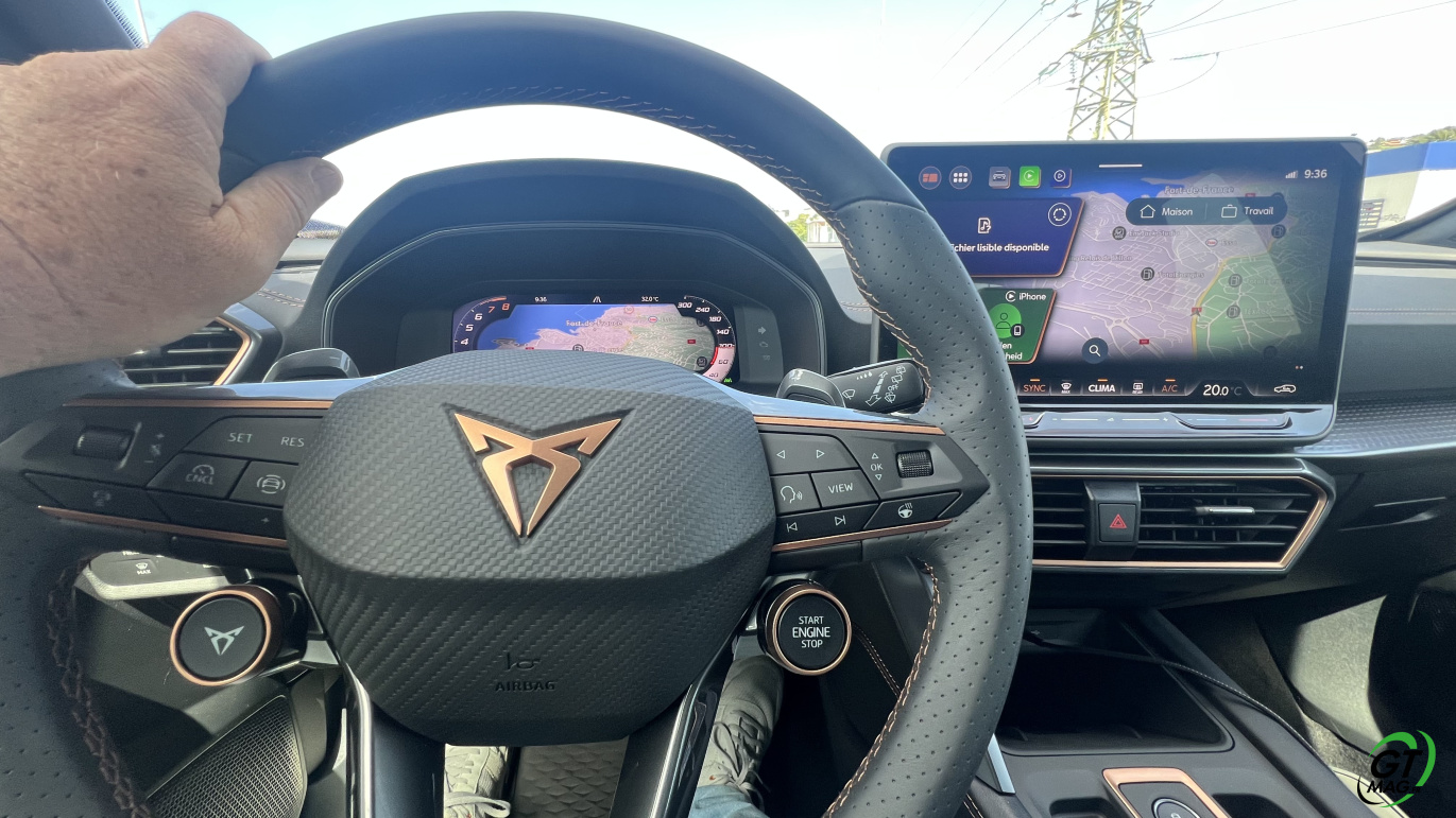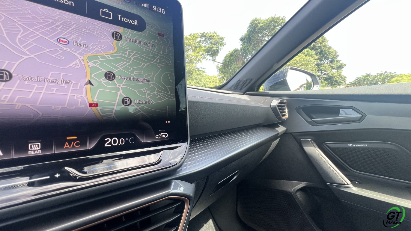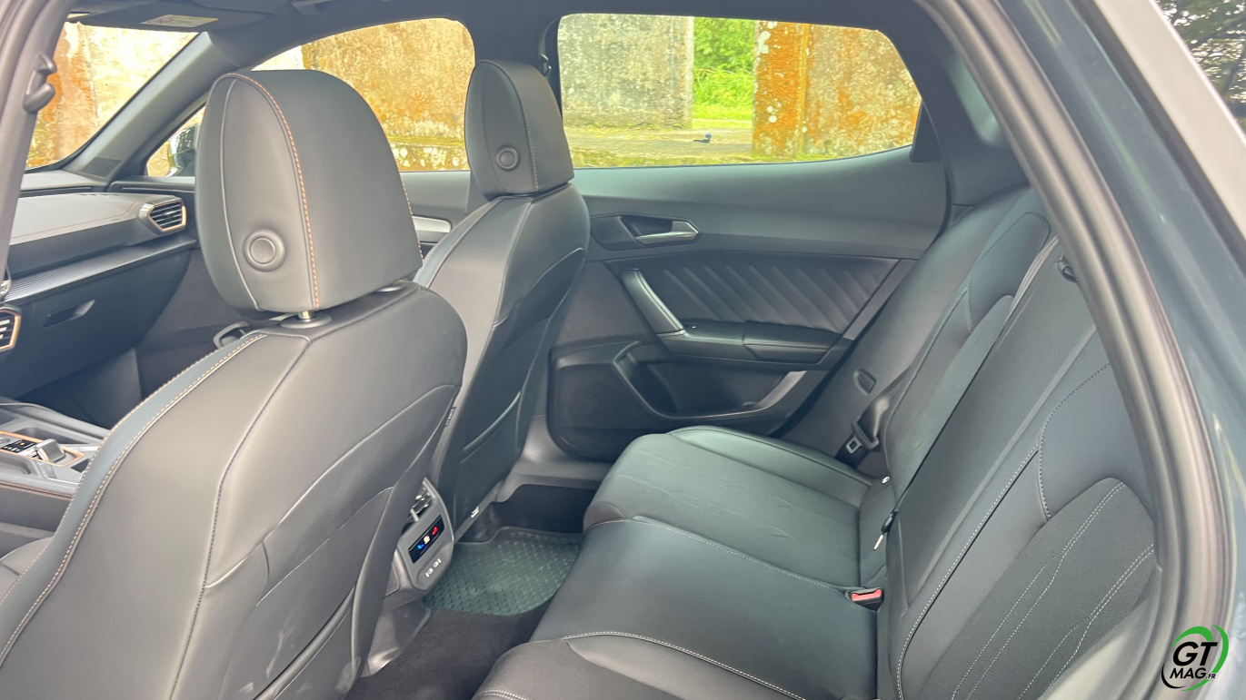 Avec ce moteur, le Formentor est uniquement disponible avec une seule finition dénommée « V », qui correspond à l’entrée de gamme, mais qui se révèle particulièrement complète. Elle se compose des vitres arrière surteintées, des projecteurs Full LED, du volant sport chauffants avec commandes et palettes, les détails intérieurs cuivrés, la banquette arrière rabattable, le digital cockpit 10,25 pouces, le système multimédia 12,9 pouces, la recharge par induction, la connectivité AppleCarplay et Androïd Auto sans fil, le système audio avec 6 HP, le régulateur de vitesse et les projecteurs adaptatifs, la détection de fatigue, l’aide au maintien dans la voie, la reconnaissance des panneaux de signalisation, l’aide au stationnement avant et arrière avec caméra de recul, le système de pré-collision, le hayon mains-libres et l’accès et le démarrage sans clé. A vous de voir et de l’essayer maintenant…