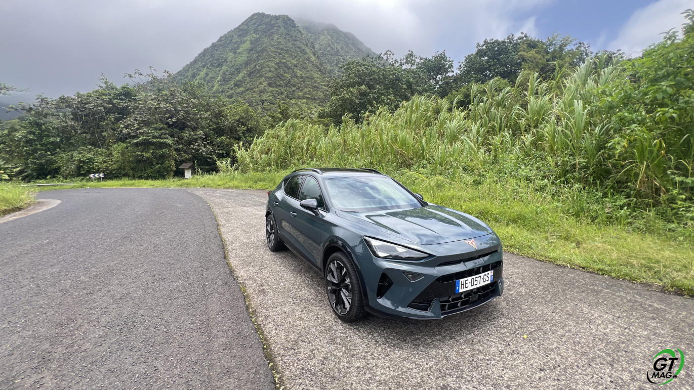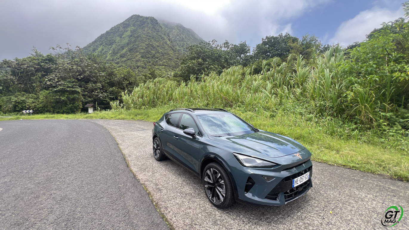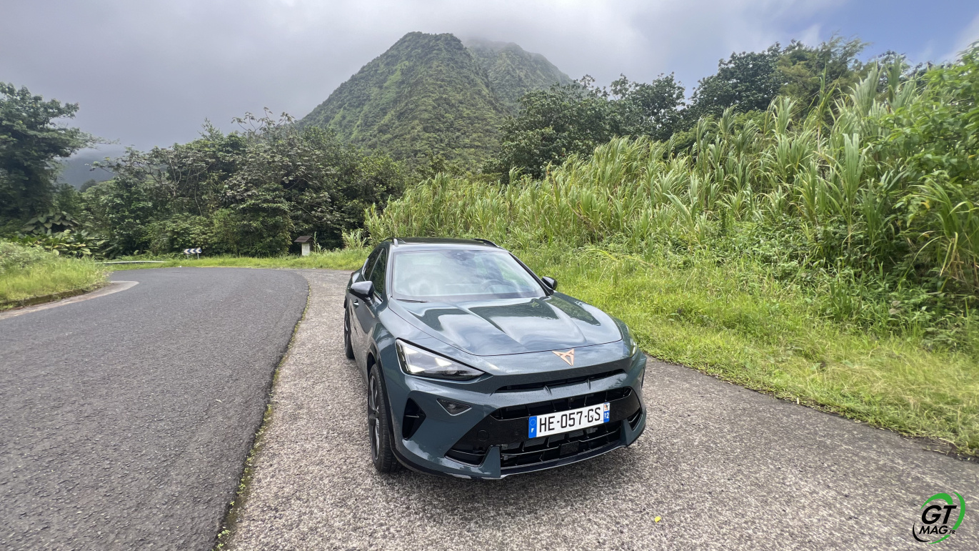 Intérieur digne du haut de gamme, lignes agressives pour rappeler que notre époque est plutôt aux SUV Sportifs la Martinique n’échappe pas a cette tendance mondiale… Finalement la CUPRA Formentor à tout pour plaire… Sur nos route, elle avale l’asphalte goulûment en restant collé à l’itinéraire choisi par son pilote et ne bronche pas d’un centimètre sauf à rattraper quelques erreurs de placements trop risqués avec ses aides à la conduite… Le confort visuel et le confort de tenue de route rappelle les impératifs de la marque ibérique soit : proposer une belle auto agressive non sans rappeler qu’elle est faite aussi pour accélérer fort même avec ses 150ch… Bien-sur le 272 est au fond de ma pensée tant le CUPRA FORMENTOR est génétiquement taillé pour envoyer de la cavalerie…