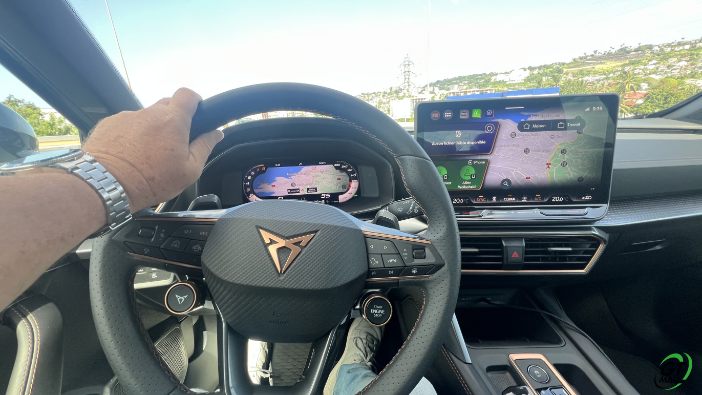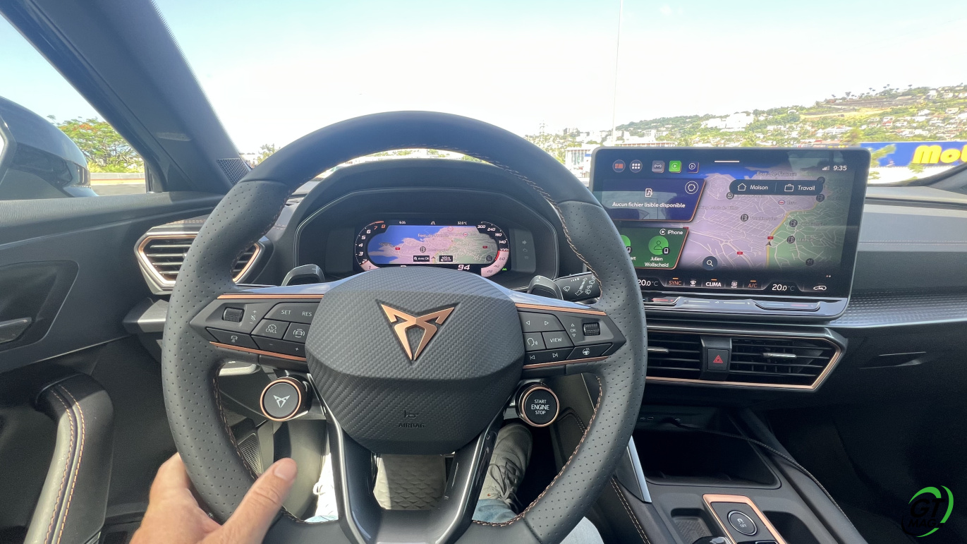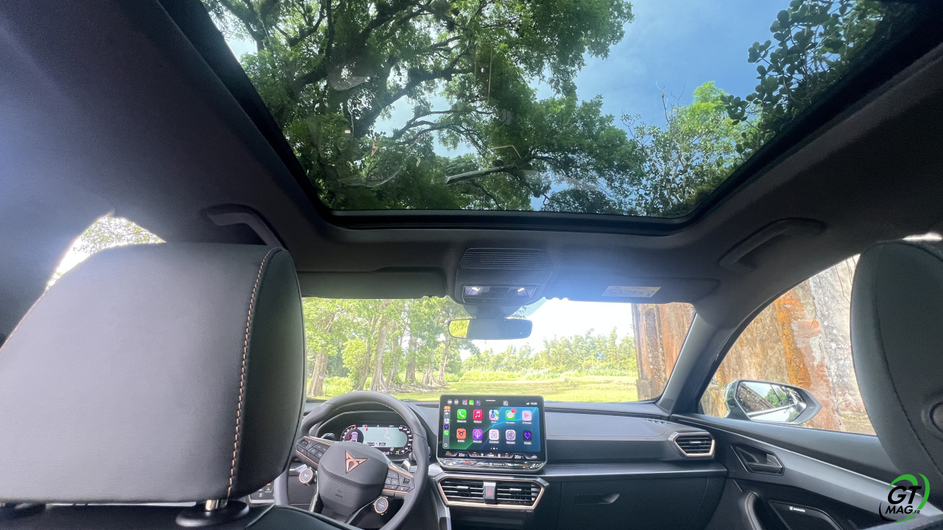 Intérieur digne du haut de gamme, lignes agressives pour rappeler que notre époque est plutôt aux SUV Sportifs la Martinique n’échappe pas a cette tendance mondiale… Finalement la CUPRA Formentor à tout pour plaire… Sur nos route, elle avale l’asphalte goulûment en restant collé à l’itinéraire choisi par son pilote et ne bronche pas d’un centimètre sauf à rattraper quelques erreurs de placements trop risqués avec ses aides à la conduite… Le confort visuel et le confort de tenue de route rappelle les impératifs de la marque ibérique soit : proposer une belle auto agressive non sans rappeler qu’elle est faite aussi pour accélérer fort même avec ses 150ch… Bien-sur le 272 est au fond de ma pensée tant le CUPRA FORMENTOR est génétiquement taillé pour envoyer de la cavalerie…