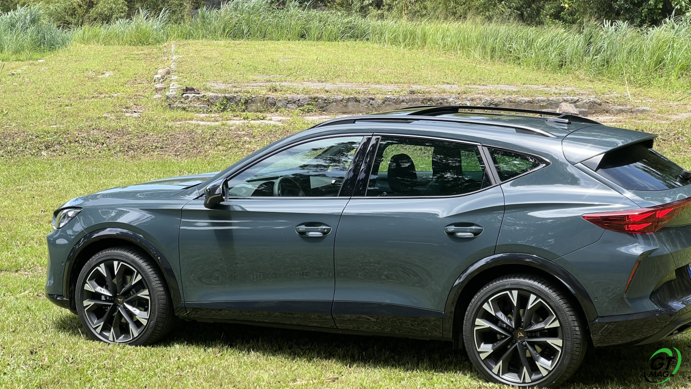À l'arrière, les feux adoptent là aussi la signature lumineuse sous forme de trois triangles, alors que le bandeau qui les relie abrite désormais le logo rétroéclairé. On notera la CUPRA FORMENTOR fait appel à de nouvelles sorties d’échappement factices au look plus sportif et que les réflecteurs positionnés plus haut deviennent verticaux. Dessiné pour jouer les sportifs les ingénieurs de la marque ont arrondis les angles tout en conservant certaines lignes acerbes et agressives… la poupe qui se termine légèrement surélevée lui donne un côté baroudeur, la proue elle s’affirme et sa large calandre officie comme une armure striée qui donne un aspect solide et respectueux… La voiture est spécialement bien dessinée loin de certaines abruptes concurrentes trop spatiales aux allures trop stéréotypées… Non je fais face là à un modèle véritablement identitaire qui favorise le coup de cœur dans grâce à sûre réussite stylistique …