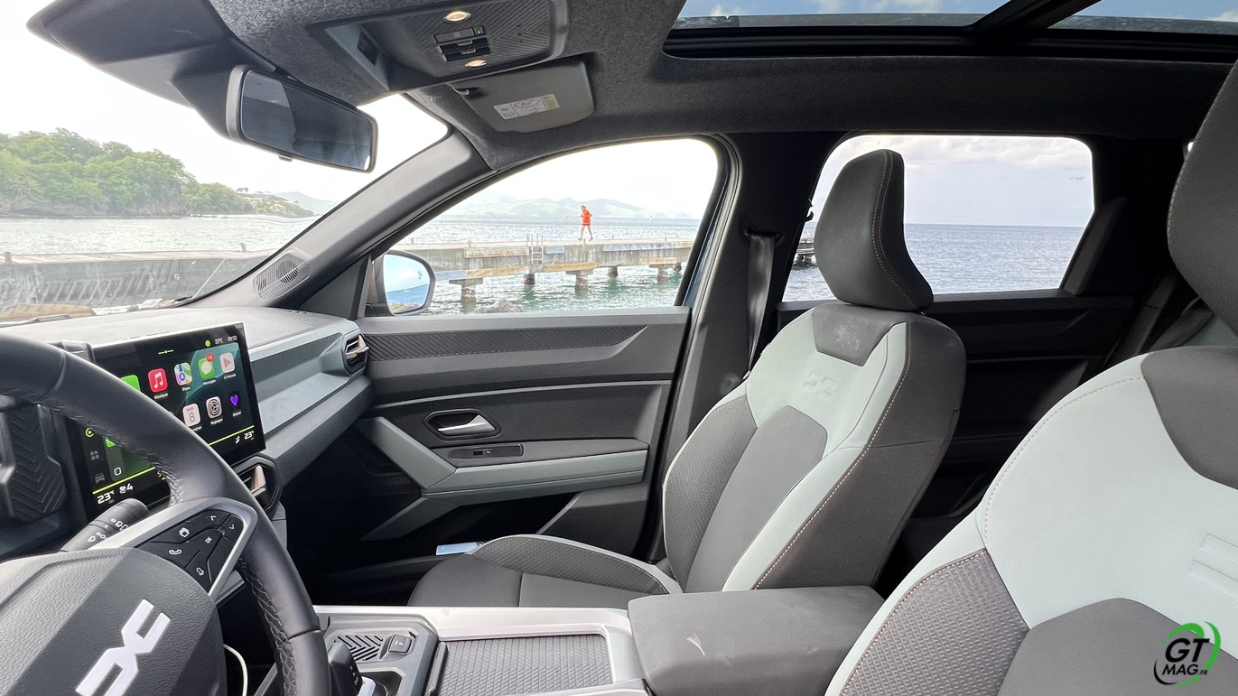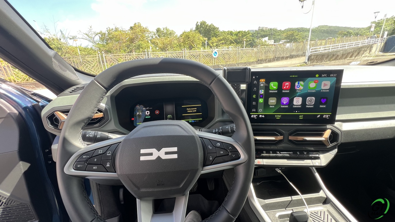 En termes de tenue de route, le DACIA Bigster est dans la bonne moyenne du segment C. Il se montre efficace ses 4 pattes sur notre autoroute et suffisamment maniable pour des sorties en ville. Sur nos routes sinueuses il est un peu plus à la peine compte-tenu de son gabarit, mais ses suspensions et son châssis équilibré offrent une conduite plutôt confortable. Mention très bien pour la direction assistée, plutôt bien calibrée pour un SUV de ce gabarit, ce qui permet de manier avec vraie aisance, même en milieu urbain. Le grand atout de ce véhicule c’est l’espace réservé aux passagers et à sa polyvalence… Côté volume le coffre est un vrai plus pour nos îles si vous êtes sportifs avec planche de surf ou cycliste ou tout simplement plagistes avec un belle et grande famille elle peut assurément vous séduire…  A vous de voir et de l’essayer maintenant…