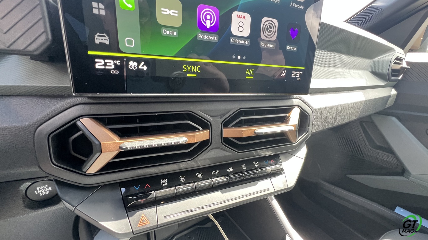 A noter que le DACIA Bigster inaugure des équipements jamais vus encore chez Dacia : une clim avec un réglage bi-zone, des aérateurs aussi à l’arrière, avec un bac climatisé sous l’accoudoir, un régulateur de vitesse adaptatif, un tableau de bord numérique qui affiche le guidage GPS de votre téléphone, un grand toit panoramique ouvrant, un siège conducteur à réglages électriques, 2 prises USB à l’AV, 2 à l’AR, une banquette fractionnée 40-20-40 et rabattable en un tournemain par une manette très pratique, un pare-brise chauffant par de micro-résistances électriques quasi invisibles et un hayon motorisé. Comme les autres nouvelles Dacia, la Bigster dispose également de points de fixation "YouClip". Ceux-ci permettent de fixer des accessoires tels qu'un porte-gobelet, un porte-téléphone et un multi-support (crochet, plateau, lampe de poche)… En option, comme sur le Jogger, un aménagement arrière inconnu chez la concurrence le ‘Pack Sleep’ : un lit, réellement utilisable pour des personnes jusqu’à 1,90 m, et qui fait 1,30 m de large.