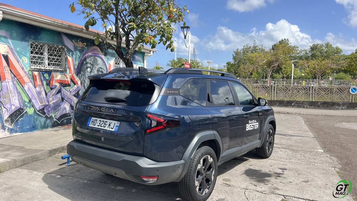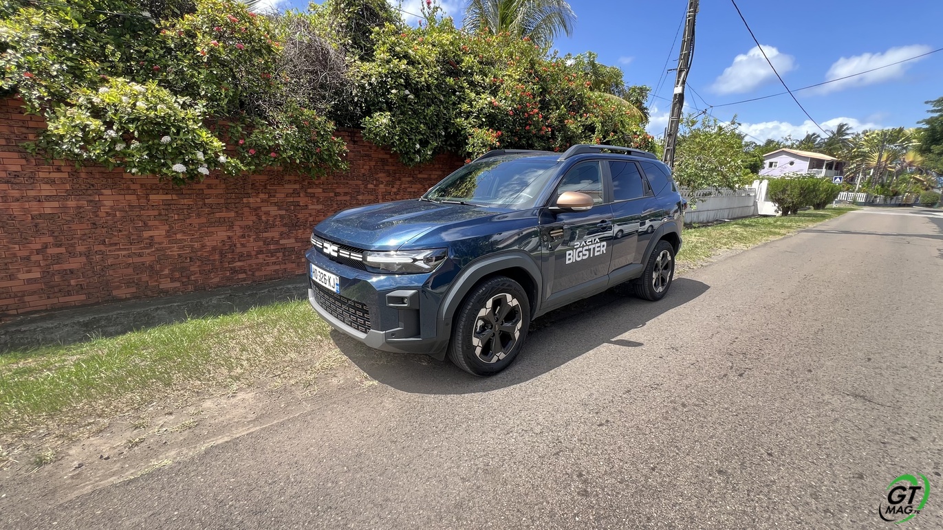 DACIA BIGSTER ou construire du grand avec un petit budget ! C’est surement la recette que DACIA applique au moment de la conception de son nouveau projet il y a quelques mois… La feuille de route était a priori de partir du DACIA DUSTER avec qui il partage la même plateforme et d’en définir le budget de construction dans des limites pré-établis pour pouvoir proposer une grande voiture à petit prix ce qui l'ADN de DACIA depuis sa création… Joli coup finalement car tous les investissements avait déjà été réalisé sur le DUSTER, restait à donner au BIGSTER un peu plus de raffinement qui sont les caractéristiques d’un SUV Moyen sur ce segment… Départ de chez Dacia Martinique pour découvrir notre DACIA BIGSTER Hybride le premier 1.8l de 155ch avec sa boite automatique…