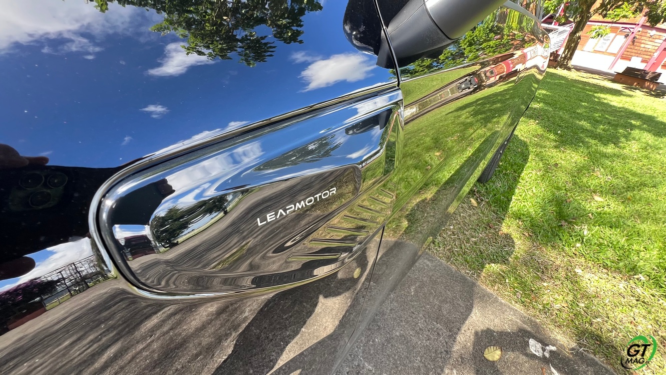 Les Leapmotor B10 et C10 partagent une plateforme et leurs technologies. Pas étonnant donc de retrouver le moteur électrique de 218 ch sur le train arrière du petit crossover. Il présente aussi une suspension McPherson à l’avant, 5 bras à l’arrière et même une répartition du poids 50/50. Ce dernier élément est sans doute aidé par les batteries. Eh oui, il y a en a deux au catalogue on l’a vu. En Martinique la grande batterie présente une capacité de 67,1 kWh, ce qui lui permet d’offrir une autonomie de 434 km. Elle charge à 168 kW elle prendra 20 min pour passer de 10 à 80 % de charge sur une borne rapide. Côté consommation et d’après mes petits calculs, il faudra toutefois tabler sur un appétit moyen gravitant autour des 16 à 18 kWh/100 km, soit près de 360 km à 390 km d’autonomie. Ma conduite, mon style ont été plutôt raisonnable flirtant parfois avec une écoconduite que je maitrise très bien, mais aussi des moments d’accélérations voulues et prolongées sur notre rocade ou autoroute…