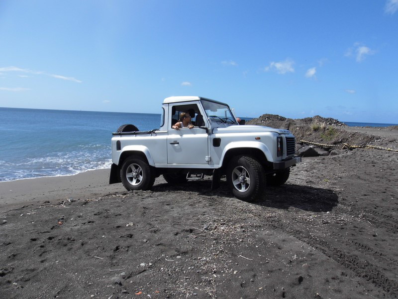 Bou Diou !!! Je suis face à un mur enchevêtré de caillasses délictueuses… Des pics agressifs qui surplombent une ravine en dévers tout cela dans une montée drue et peu engageante… J’ose à peine me poser la question ! Va-t-il aimer mon DEFENDER ??? Boudoum !!! Le temps de le dire et me voici en haut de l’obstacle avaler sans une hésitation… Le différentiel en mode ‘je passe quoi qu’il arrive et quoi qu’il y ait à dévorer’ fonctionne à merveille… Il est temps maintenant d’attaquer le chemin que même mes amis maraichers ne gravissent qu’à pied avec sac à dos et bon escarpins… Ils me font signent d’ailleurs avec une main fébrile « Ca passera pas là mon frère !!! » Atteint de surdité volontaire je les retrouves à leur emplacement tout en haut du morne ayant fracassé la moindre difficulté… Les bons hommes applaudissent et me voici le héros d’un jour au volant de la bête mécanique… Après avoir dégusté une bonne tranche de pastèque tout en répondant aux questions brulantes des mes hôtes il est tant de redescendre par le même chemin… Point de peur mon DEFENDER, aidé par mes coups de volants et mon œil précis, mon DEFENDER donc digère les obstacles humides tantôt rugissant tantôt ronronnant et disposé… Diantre, me voici Indiana Jones, fort comme un chien fé qui repousse les démons… DEFENDER est THE 4X4, il convient aux hommes du terroir, aux bosseurs des champs, aux laboureurs des montagnes et surement aux marins pêcheurs… Terrains boueux, terre meuble, sable embourbant ou ravines tueuses, le vénérable DEFENDER ne vous laissera jamais tomber et surtout pas indifférent, c’est certain….