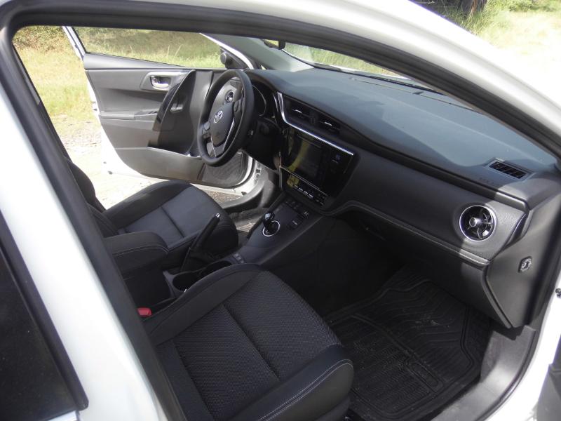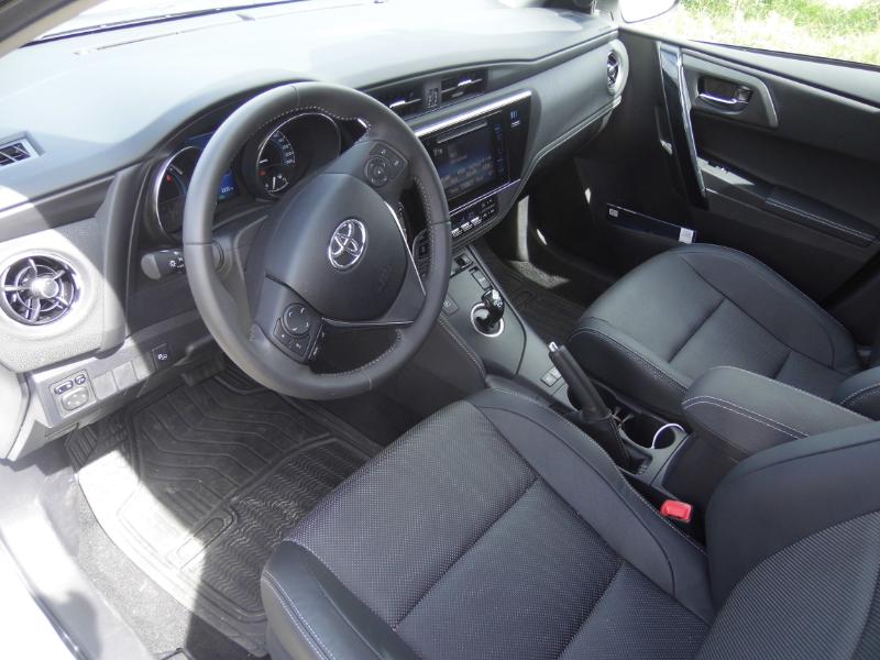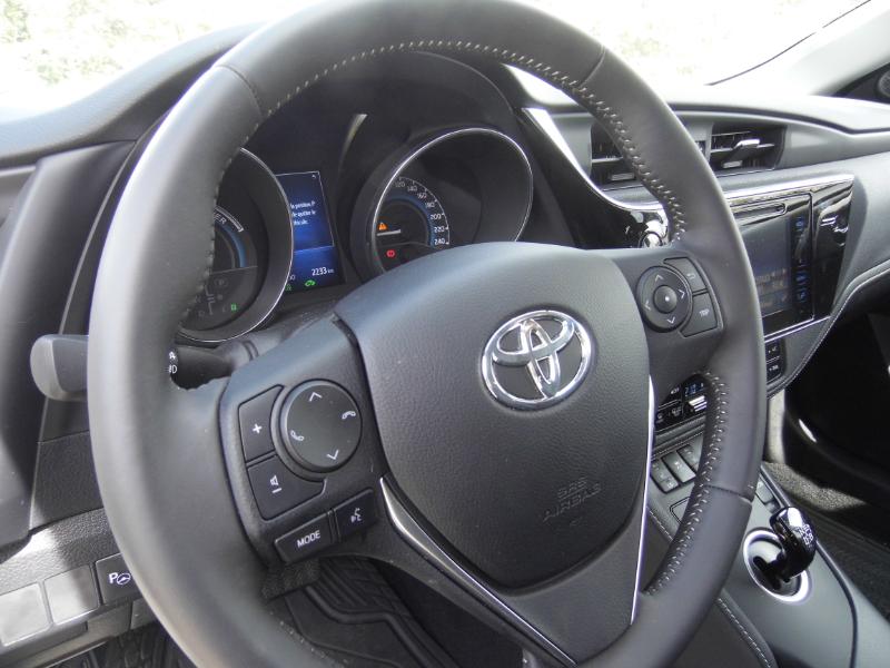 Dela nouvelle Auris Hybride de 136 ch en finition SR… Une 5 portes haute en silence et en confort… Je suis toujours étonné par le fait de lancer une voiture sur nos routes avec ce sentiment de pleinitude… On est bien sous le règne hybride et sa bulle de bien-être… Voyons. Entre design extérieur, aménagement intérieur et nouvelles motorisations,Toyota a offert un large dépoussiérage à son modèle phare pour continuer à faire progresser ses parts de marché sur l’ultra-concurrentiel segment C. Des modifications qui touchent aussi bien la version berline que la version break (touring sports) de l’Auris. A l’extérieur, le constructeur a notamment revu le design de la poupe qui intègre désormais une large bande chromée traversant toute la calandre. A l’intérieur, Toyota cherche à rehausser la qualité perçue avec une planche de bord redessinée, un écran tactile de 18 cm et un nouvel écran multi-fonction TFT couleur de 11 cm placé au centre des deux cadrans d’instrumentation. En termes de conduite, Toyota annonce avoir revu certains éléments comme les suspensions et la direction afin d’améliorer le confort routier. Le constructeur a également travailler à une meilleure insonorisation de l’habitacle. Côté motorisations, Toyota agrandit sa gamme avec l’introduction d’un nouveau moteur essence 1.2 litre turbo tandis que le turbo-diesel cède sa place à un 1.6 litre D4D, le tout conforme à la norme Euro 6. Si la motorisation hybride n’évolue pas, conservant son moteur 1.8 l essence et son moteur électrique de 60 kW pour 136 ch de puissance cumulée, l’amélioration de aérodynamique et l’optimisation des pneumatiques lui permettent d’être un poil plus efficiente avec des émissions de CO2 désormais annoncées à 79 g/km. Sur l’aspect esthétique,l’Auris hybride conserve ses éléments exclusifs comme l’incrustation bleutées du logo. Comme sur la précédente version, le conducteur peut «forcer» l'activation du moteur électrique via un bouton situé à côté de la boîte auto. Toujours présent, le mode «eco» permet quant à lui de brider la puissance pour limiter la consommation. Et pour ceux qui veulent de puissance, le Power Mode permet d’accroître les caractéristiques dynamiques des deux motorisations, au détriment bien sûr de la consommation.Toyota AURIS Hybride : Du style et des Watts !!!