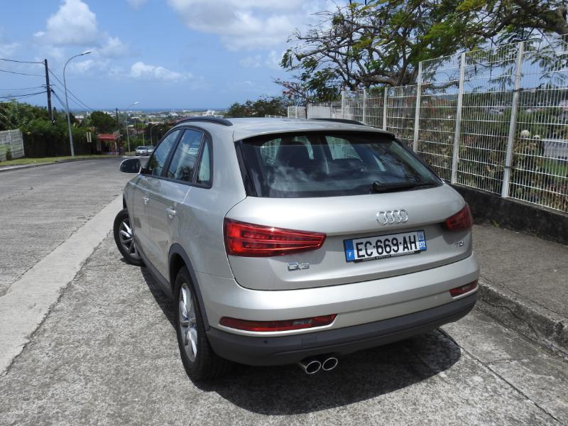 En attendant le Q2, mettre la main sur le nouveau Q3 dont la gamme de moteurs c'est élargie...Le Q3 diesel démarre désormais à 120 ch avec le 2 litres TDI dégonflé. Ce Q3 TDI 120 constitue le modèle le moins cher de la gamme avec à peine plus de 30900 € pour l’entrée de gamme en Martinique. Il peut être associé à 4 niveaux de finition et propose la boîte manuelle ou automatique, la transmission Quattro n’est pas disponible avec ce « petit » diesel.