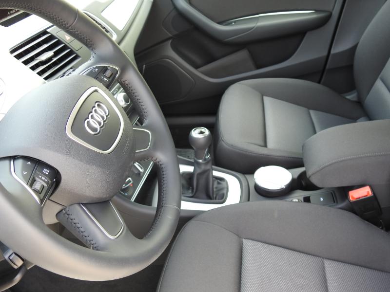 A l’intérieur, le Q3 reste une Audi, c’est-à-dire doté d’un habitacle plutôt flatteur tant pour la qualité des matériaux que pour l’assemblage. Nous avons apprécié l'assise plutôt confortable, le Q3 donne une bonne habilité même si à l'arrière 3 adultes seront un peu serrés... Le coffre atteint les 460 dm3 de contenance, soit un peu plus que le GLA mais moins que le X1. L'écran MMI couleur est agréable et haut perché c'est un plus... (Non tactile). Contact et le 2 litres diesel se montre un peu grondant, mais on évite les vibrations. Il relance facilement à bas régime avec un couple disponible dès 1500 tours. Les performances sont correctes, les 120 ch tracte les 1500kg avec souplesse. La commande manuelle de boîte est plutôt agréable. Dans sa version Attractionl'AUDI Q3 vous propose pour 33 785 euros le volant cuir multifonction, les jantes 17'', le bluetooth, l'Hold assist, Mmi couleur, le radar de recul, les phares xénon, le détecteur de pluie, l'allumage automatique des feux... En conclusion: Le Q3 Tdi 2,0l 120 cv reste fidèle à sa réputation... Le petit SUV d'AUDI vous assure fiabilité et nous impose confiance en lui... Le rapport qualité/prix idéal sur le marché Premium local? Pour faire l'essai de l'AUDI Q3 nouvelle motorisation appuyez ici !!! Jean-Marc Wollscheidpour Grantomobil.fr