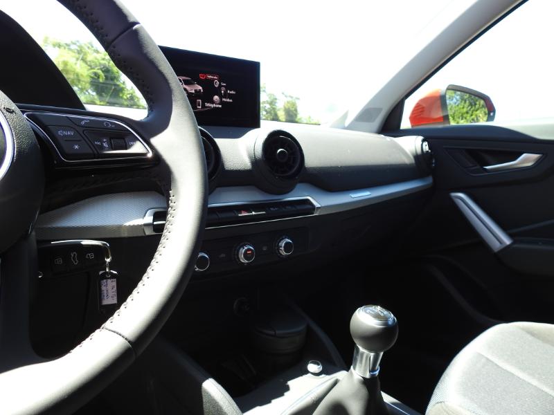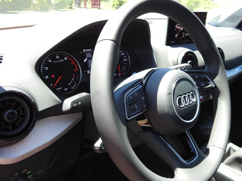 ous avons eu l’opportunité d’essayer la version qui représente le cœur de la gamme, le 1.4 l TFSI de 150 ch. De plus, et c’est un point important, c’est la seule en essence disponible dès ce mois-ci pour le lancement commercial du Q2. Son couple important de 250 Nm se déploie tôt dès 1 500 tr/min. Cela confère au Q2 une indéniable facilité à se mouvoir. Les reprises sont franches grâce à la boîte S tronic que l’on ne présente plus. Au-delà d’une puissance suffisante, le 4-cylindres est très généreux. Généreux et économe car il est équipé de la technologie cylinder on demandEn ville ou en-dehors, et lorsque le moteur est faiblement sollicité, seuls 2 cylindres sont utilisés. Il en résulte des consommations contenues : 6,8 – 6,7 l/100 km en ville, 5,8 – 5,5 l/100 km en cycle mixte. Les émissions de C02 sont tout aussi intéressantes pour ce puissant petit moteur, soit 124 g/km de CO2 émis. Sur le plan des performances, le 0 à 100 km/h es réalisé en 8,5 s pour une vitesse maximale de 212 km/h.