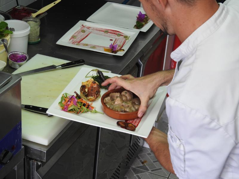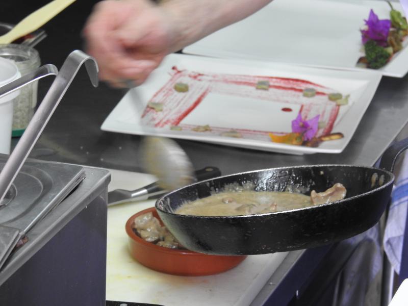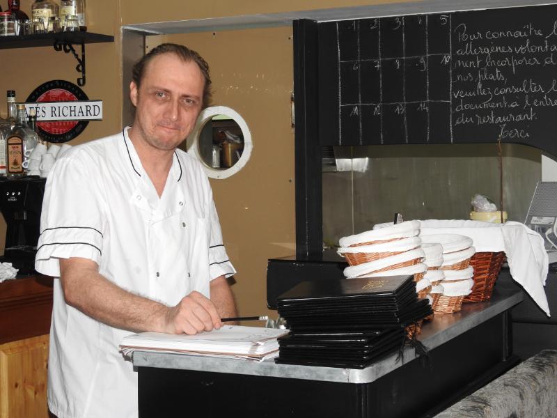 « Je suis issu d'une famille de 4 personnes et chez moi c'est mon père qui cuisinait... Mon père était très généreux dans son approche des plats familiaux et de fait, il cuisinait pour les sages et les fous...(Rire). J'ai donc appris cette générosité et le sens inné des saveurs du terroir... En venant à notre table attendez-vous à une cuisine sûrement bourgeoise mais très familiale... Je suis de formation charcutier ce qui me confère une bonne connaissance de la transformation des viandes et donc vous trouverez à notre carte également quelques terrines maisons dont celle aux noix actuellement... Mais vont se mêler rognons de veaux aux cèpes, riz-de-veaux selon arrivage avec le magret de canard ou le filet de loup à la crème de fenouil...