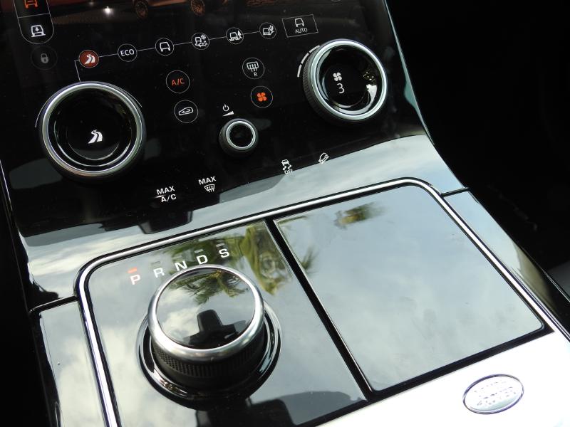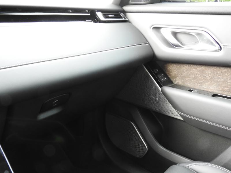 À l’intérieur, toujours ce sentiment de sérénité. Je me sens en totale sécurité, assis en hauteur avec toutes les technologies dont j’ai besoin à portée de main. Une connexion s’opère entre l’humain et le digital – les écrans plats se trouvent là où le pommeau de vitesse est placé dans une automobile traditionnelle. Velar vient de lancer son système d’info-divertissement sur écran tactile incluant deux écrans HD de 10 pouces (25 cm), intégrés derrière la surface, – qui restent masqués jusqu’à ce qu’ils soient allumés -, pour que le conducteur puisse tout le temps choisir ce qu’il voit. Directrice du design, Amy Frascella déclare : « C’est la rencontre naturelle entre le digital et l’homme — une pièce d’architecture soft qui permet à la technologie de venir à vous lorsque vous le souhaitez ».