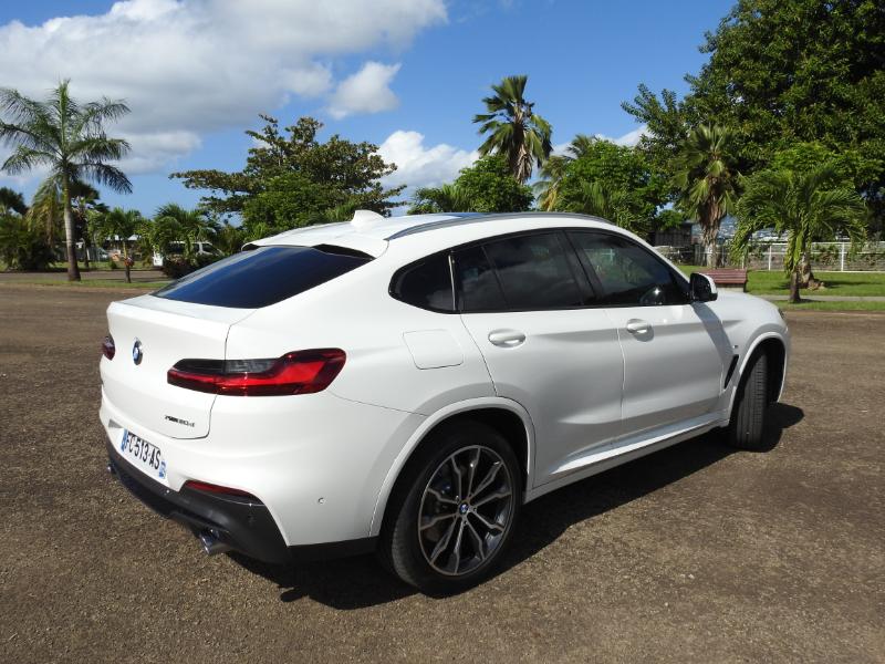 Le X4 est donc un vrai sportif. Et il le prouve en adoptant de série la fameuse suspension M Sport et la direction variable Sport. Les versions M Performance proposent également un différentiel actif et le freinage renforcé M Sport sur des roues de 20 pouces. Il profite également de la transmission intégrale xDrive dans sa dernière évolution et de la boîte automatique Steptronic à 8 rapports. Mais la suspension adaptative à trois modes reste une option. A son démarrage, le BMW X4 se propose en versions essence 20i 184ch (7,1 l/100 km et 163 g de CO2) et 30i 252ch (7,2 l/100 km et 164 g de CO2) et en diesel 20d 190ch (5,4 l/100 km et 142 g de CO2) notre essai en Martinique et le 25d 231ch (5,5 l/100 km et 145 g de CO2). Les 30d de 265ch (5,9 l/100 km et 166 g de CO2) et M40d de 326ch (6,4 l/100 km et 170 g de CO2) mais aussi la version essence M40i de 360ch (9 l/100 km et 209 g de CO2) sur commande...